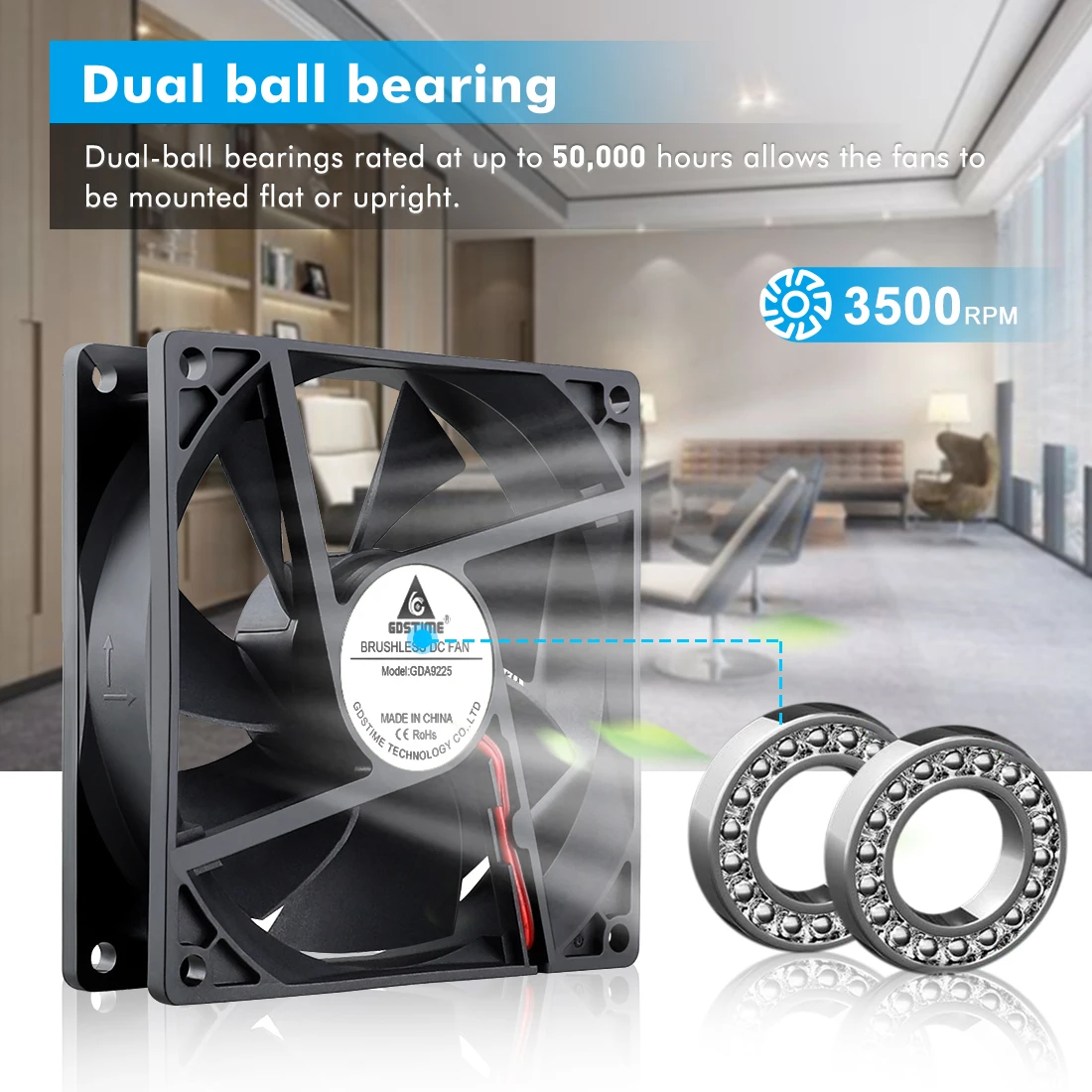 2 шт., охлаждающий вентилятор Gdstime 92 мм 9225, 92x92x25 мм, 5 В, 12 В, 24 В, 48 В