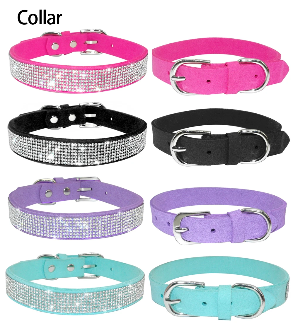 Регулируемый замшевый ошейник для собак, комплект из мягкой стразы,...