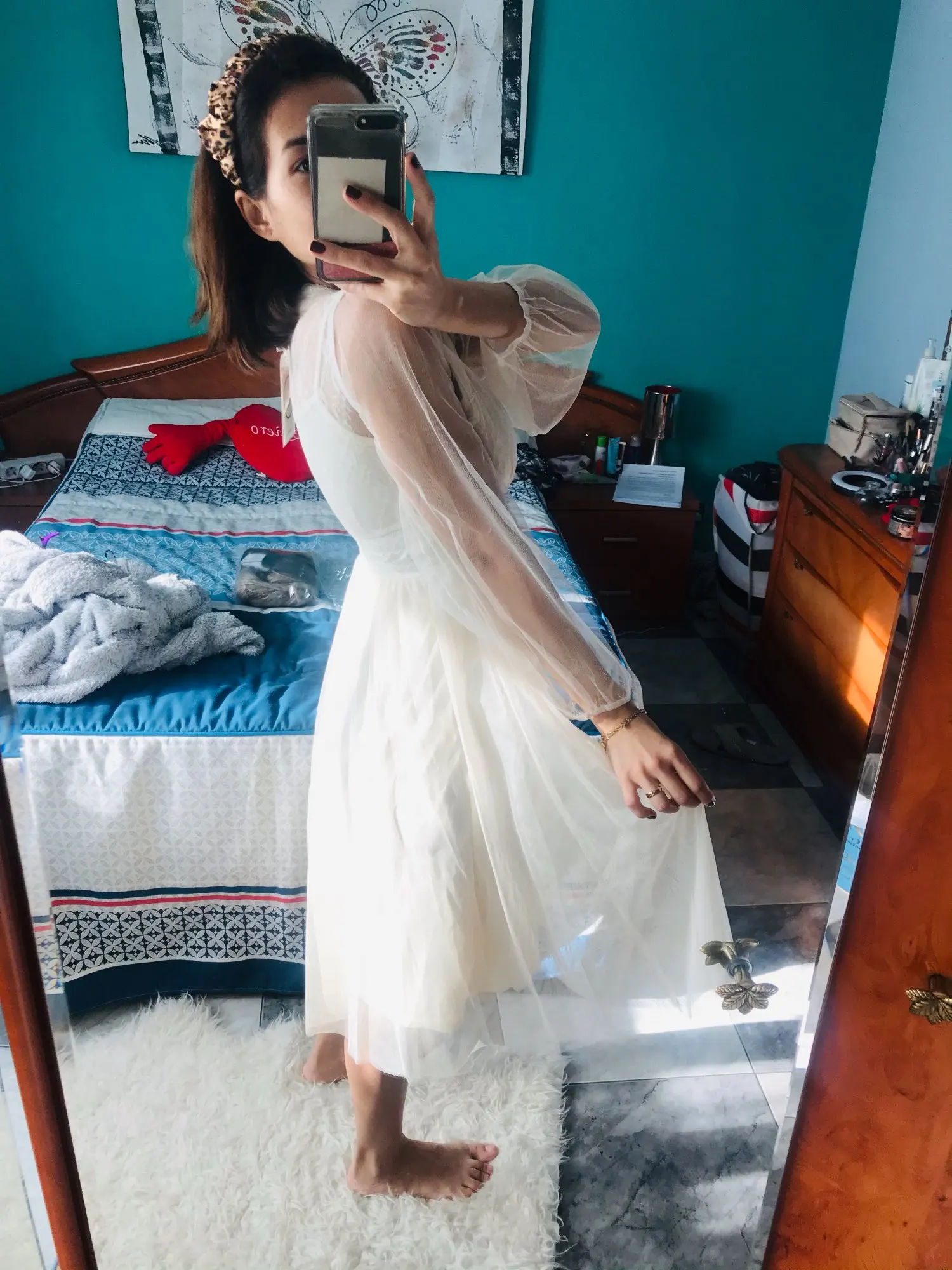 Я получил платье очень быстро. Это довольно мило по своей цене, однако ткань действительно прозрачная, и мне нужно подумать, как сделать нижнее белье невидимым, потому что это слишком много воздействия.