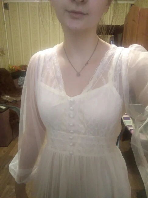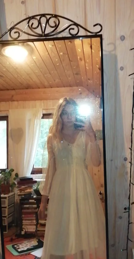 Платье прекрасное. Лёгкое, красивое, хорошего качества. Из минусов - сильно жёлтый цвет, прям как крем-брюле. И сильно просвечивает, так что вниз только светлое белье