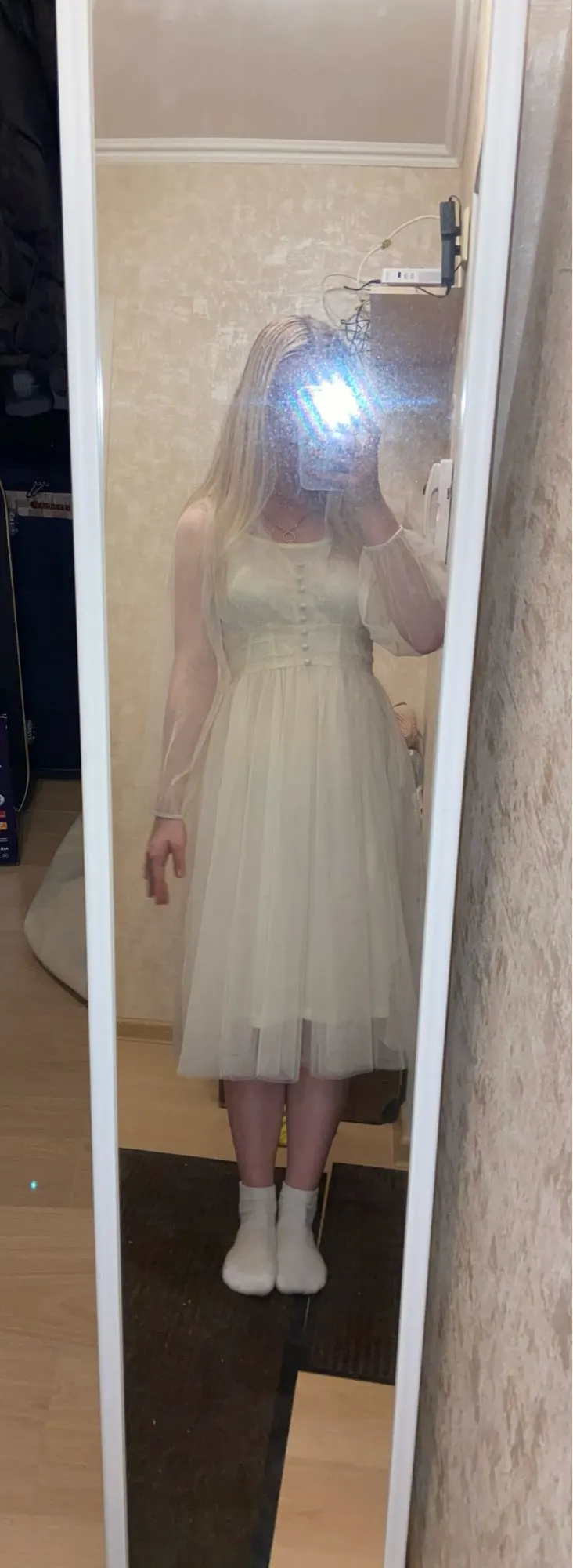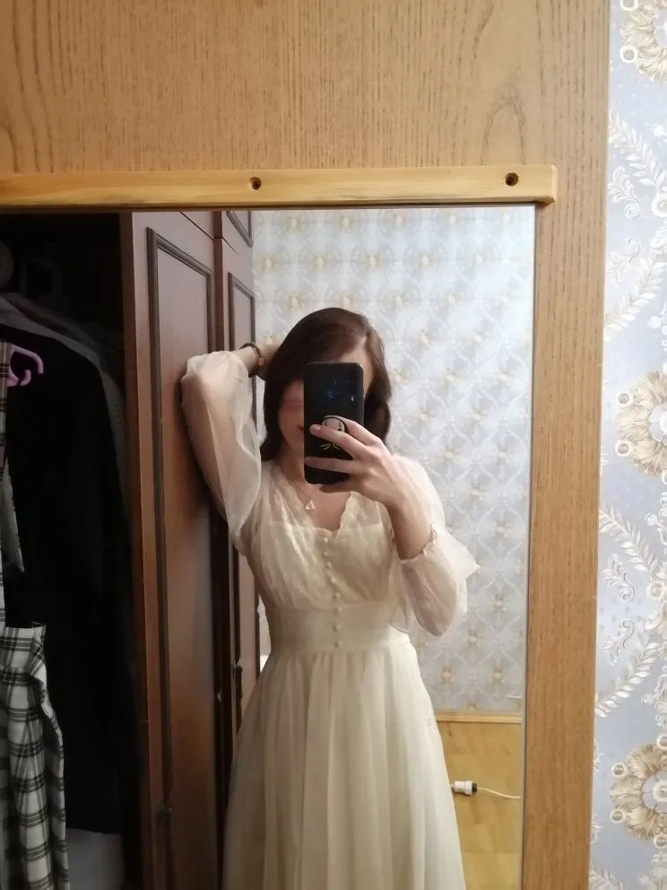 Платьечко просто охуенное. На свой рост 158 и вес 38 взяла размер XS, подошло идеально. Блин, я влюблена в него UwU/// Заказывала 03.01.21 продавец отправил 05.01.21, товар пришёл 20.01.22. В реальности кремового цвета, но как говорят товарищи госы, это и к лучше, полностью солидарна с ними. Пойду в нем на концерт Metallica. К лету готова!!! Всем любви! <3
