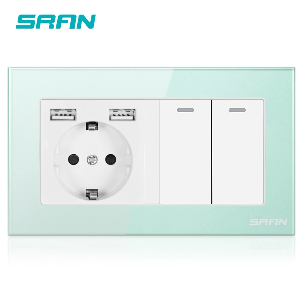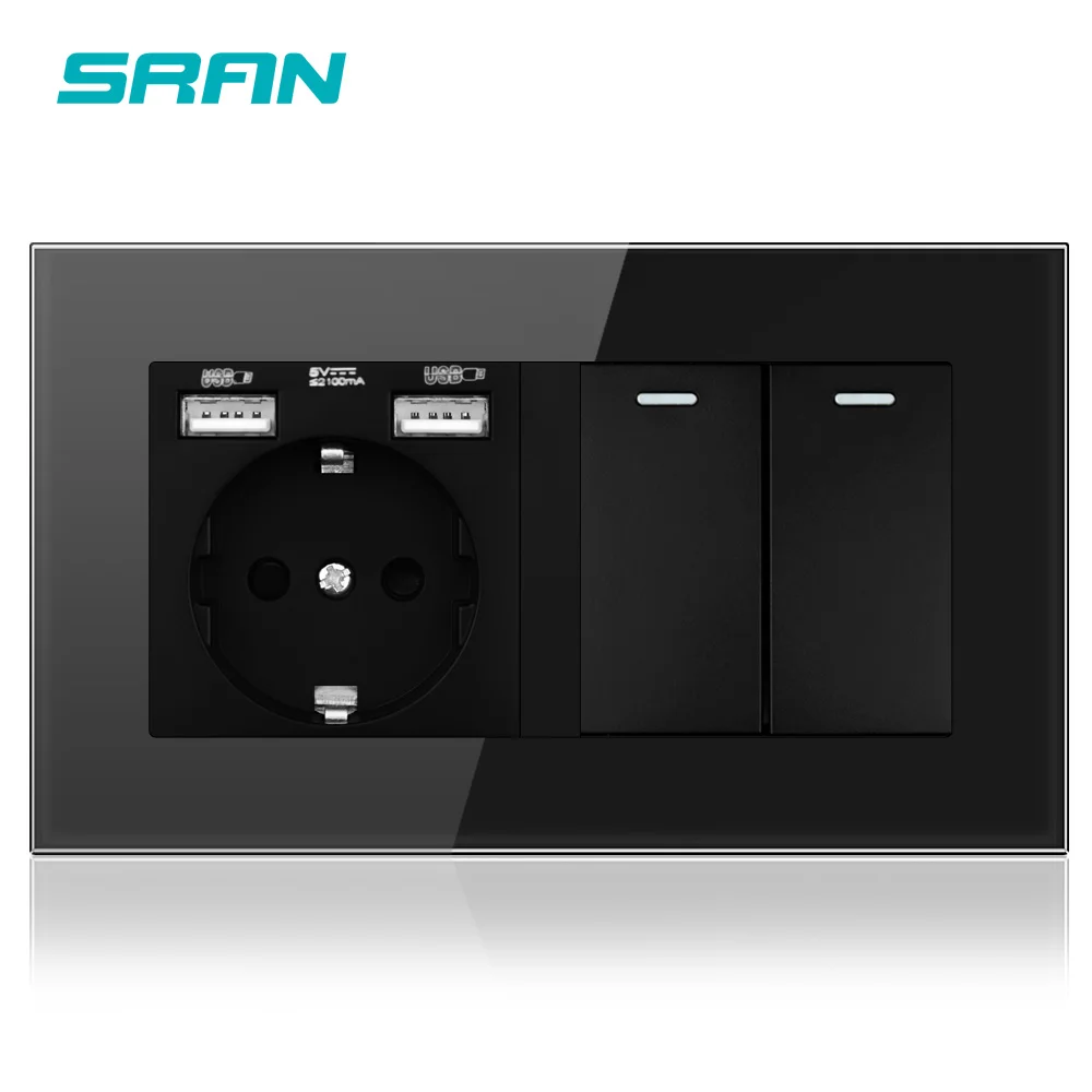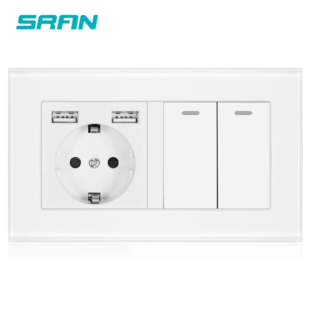 Настенная розетка SRAN с выключателем, Евророзетка с usb 220*86, 146 в, 16 А, 2 клавиши, 123 канала