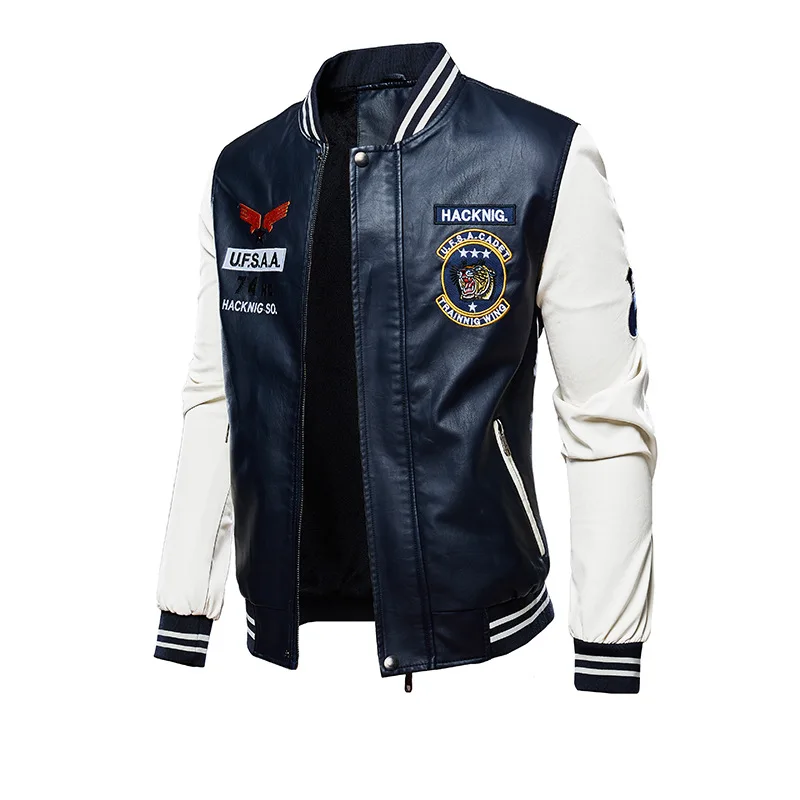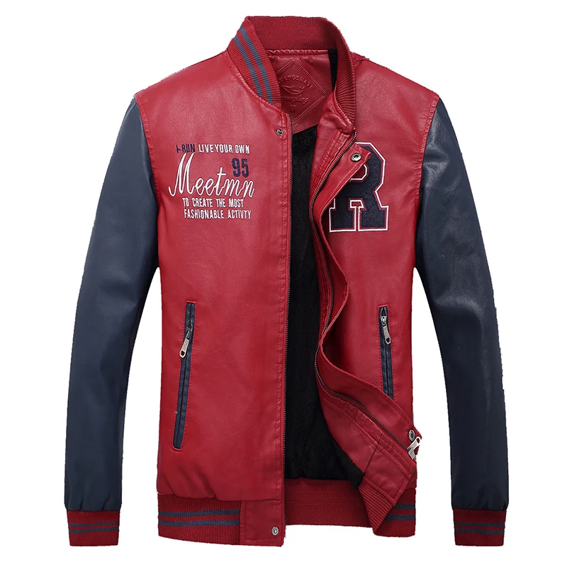 Куртка мужская из искусственной кожи, на флисе, с вышивкой, 4XL