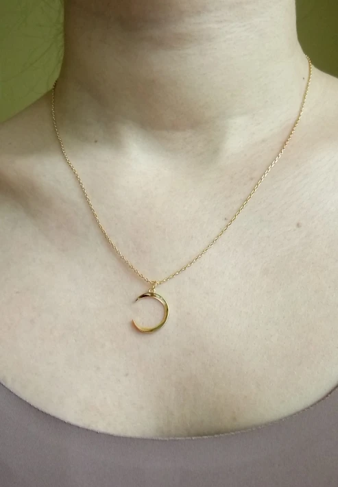 В жизни гораздо меньше, чем выглядит на фото. Полумесяц сделан наполовину, с одной стороны как на фото, а с другой как бы "вмят" внутрь, придётся следить за тем, чтобы не переворачивался изнанкой. Я ожидала, что такого не будет, это уже какой-то дискомфорт. Цепочка тоненькая, носить нужно аккуратно. Но это всё придирки, в целом же выглядит довольно приятно, мне понравилось)