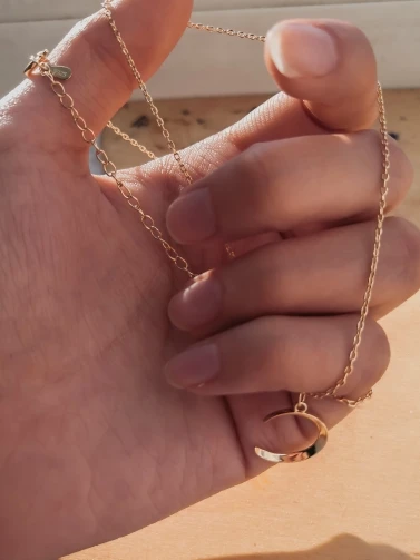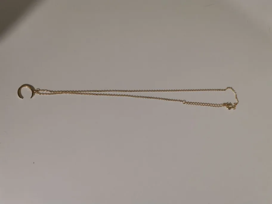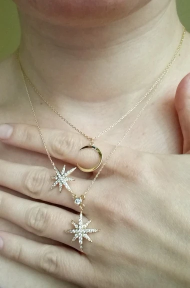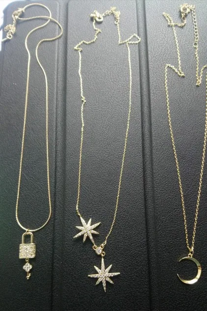 Ювелирные изделия аккуратные, как описано. Форма Луны может быть немного лучше, но она на фото. Я надеюсь, что он сохранит золотой цвет. Спасибо продавцу! Оставлю дополнительный отзыв после того, как буду носить его дольше.