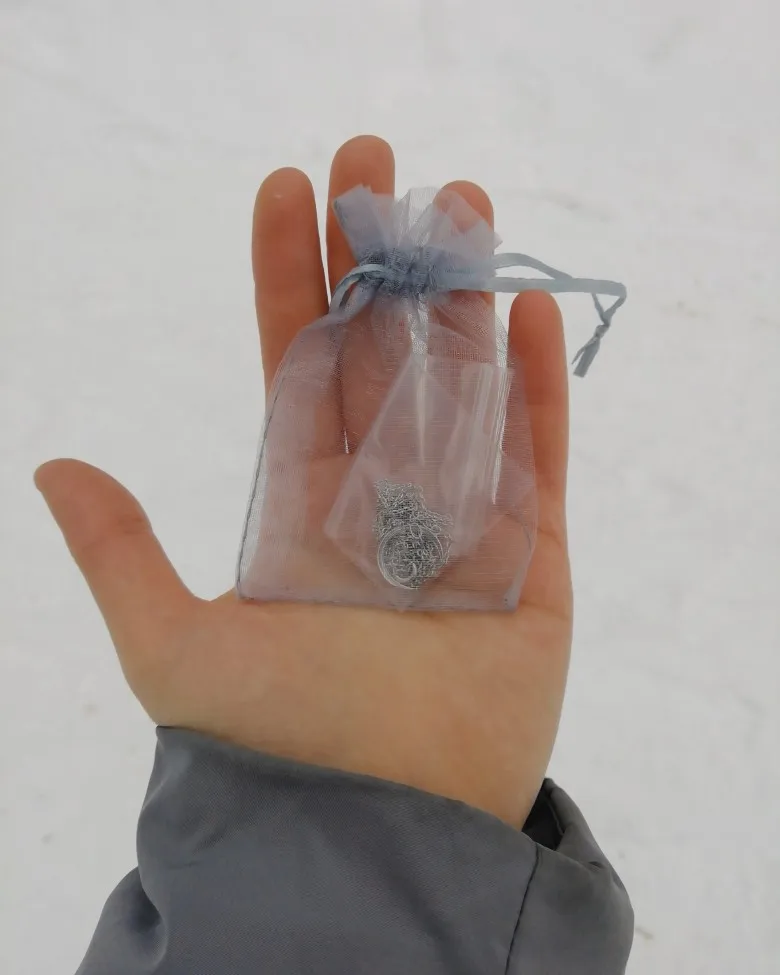 Цепочка хорошая,ещё не пробовала в носке.Пришла в мешочке и пакете.