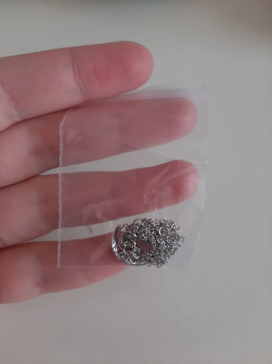 Думала кулон будет больше. Цепочка легко путается. А так не плохо.