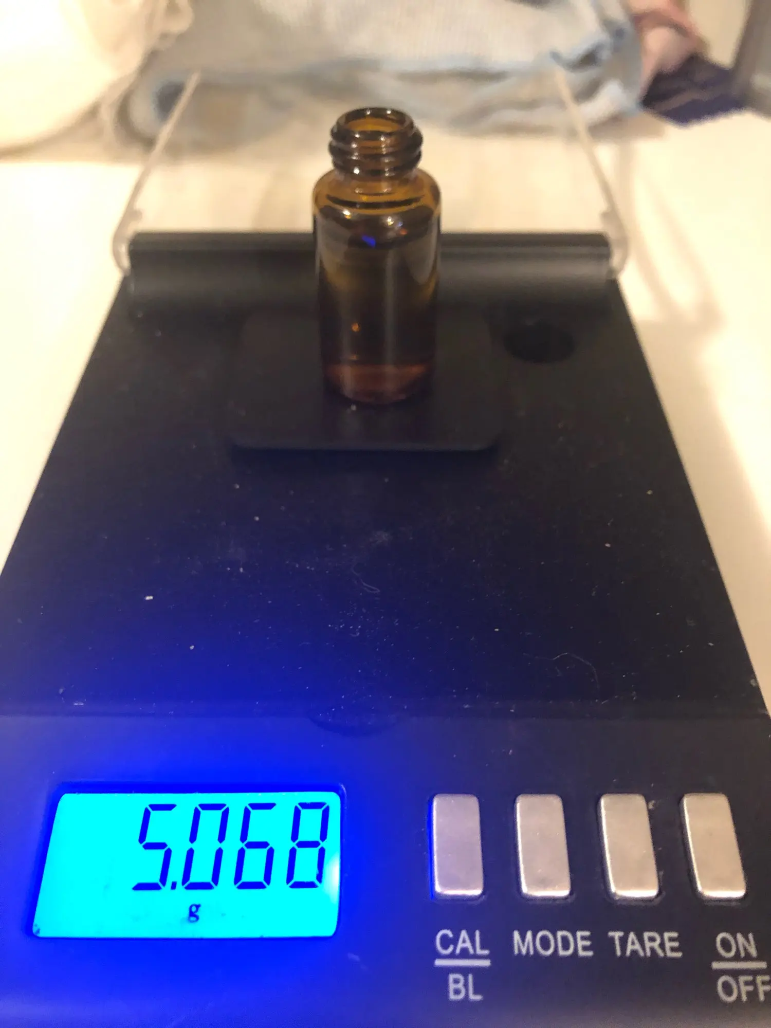 Бутылка Вмещает 5 мл воды. Бутылки выглядят меньше, чем бутылки 5 мл, которые я покупаю у аптекаря, но они вызывающе держат 5 мл воды. Бутылки немного тоньше, затем обычные бутылки, но они должны хорошо упаковываться, пока вы держите их подальше от прямых солнечных лучей. Бутылка с белым верхом приобретается в аптеке (Для справки о размере и цвете)