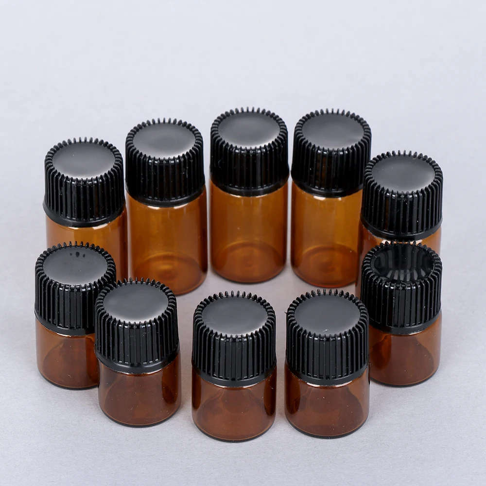 Мини-флакон для эфирных масел, 1235 мл, с коричневым отверстием, с редуктором и крышкой, многоразовые бутылки, стеклянные флаконы косметические контейнеры, 10 шт.