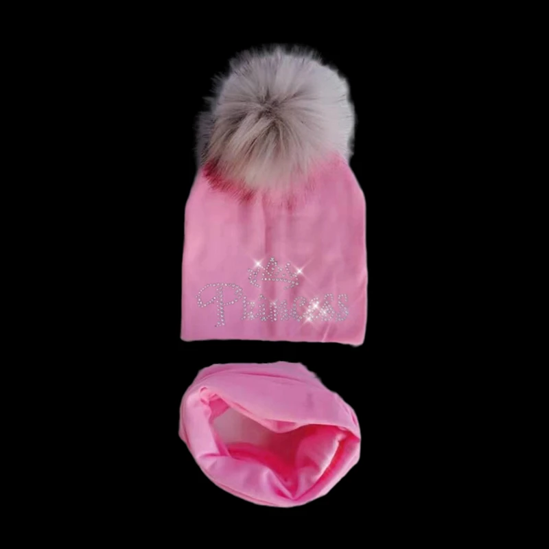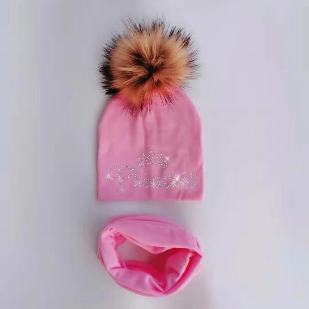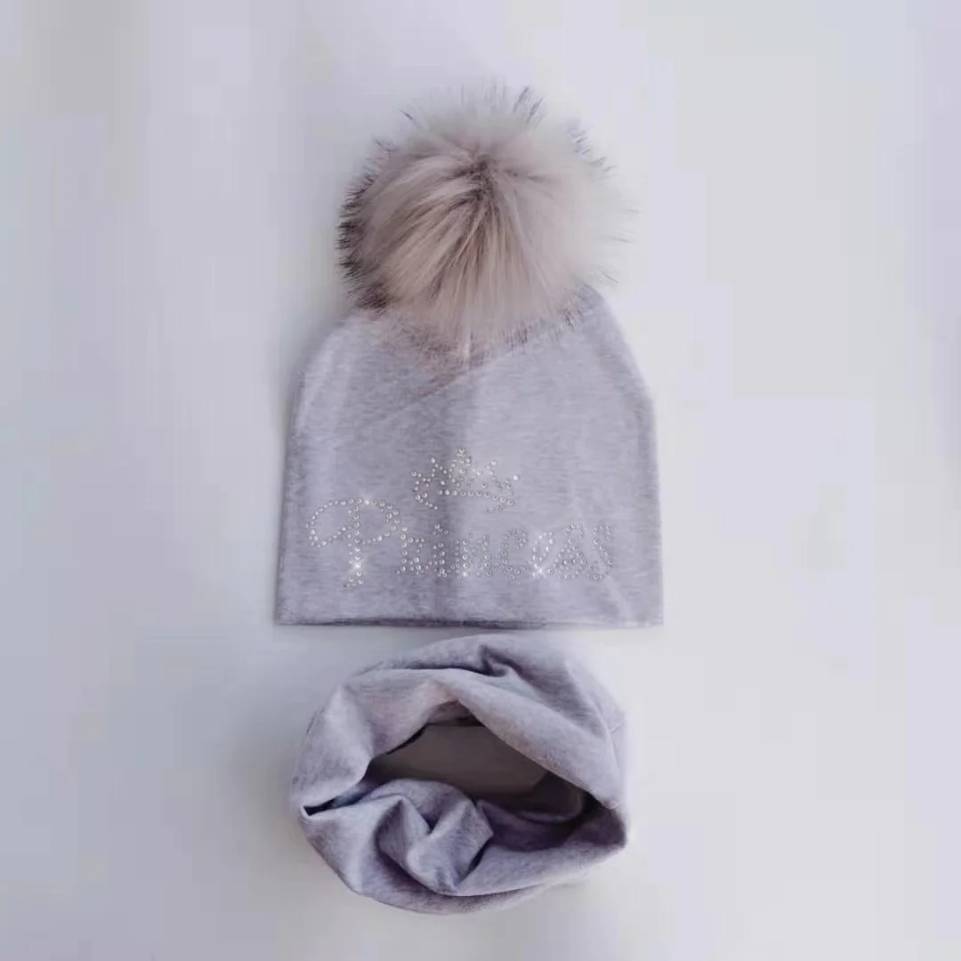 Шапка для младенцев детская шапка принцессы со стразами шапка с помпоном для девочек и мальчиков Детская Хлопковая шапочка детский воротник шарф комплект шапка