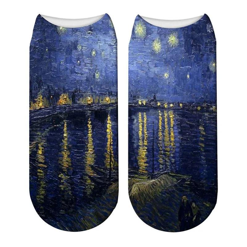 Художественные носки для женщин и мужчин, забавные Носки с рисунком, милые носки с 3D принтом неба, популярные женские носки до щиколотки, носки с объемным рисунком, 1 пара