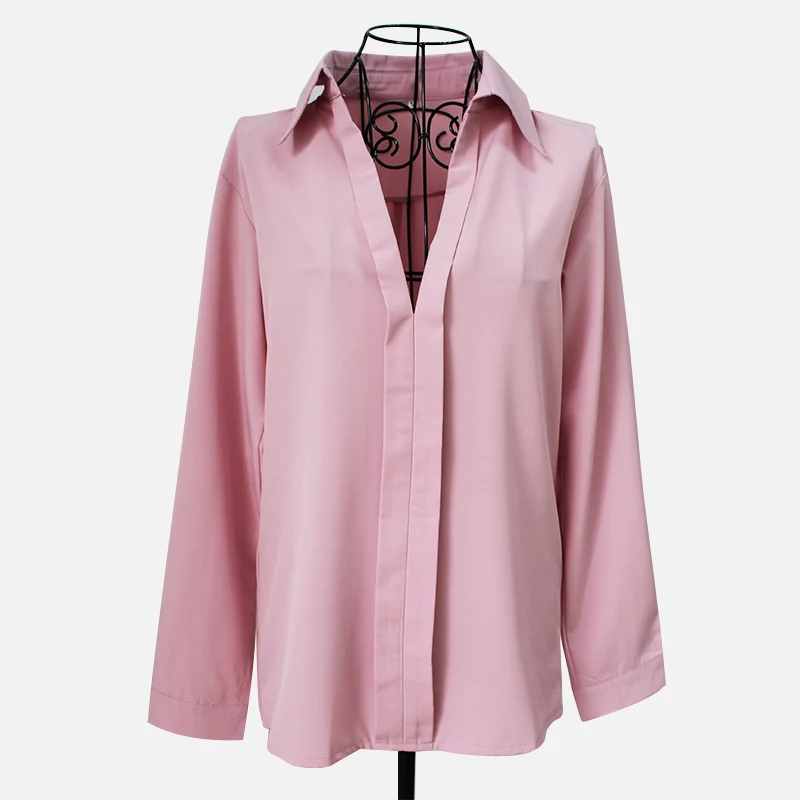 Женская рубашка с длинным рукавом, с глубоким V-образным вырезом, однотонная, офисная, свободная, весна 2021