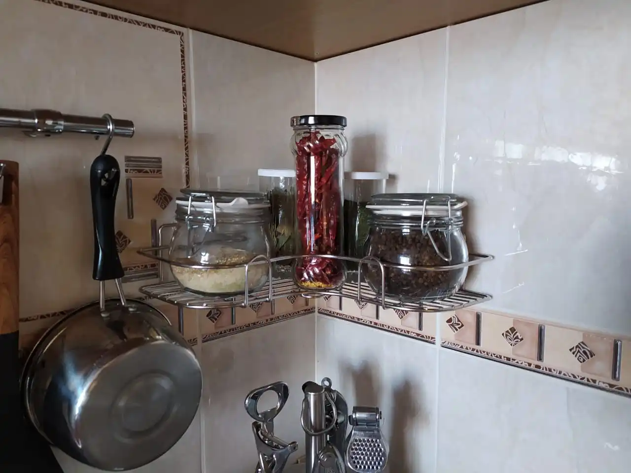 Очень классная полочка, липучки выдерживают тяжёлые баночки. Советую.