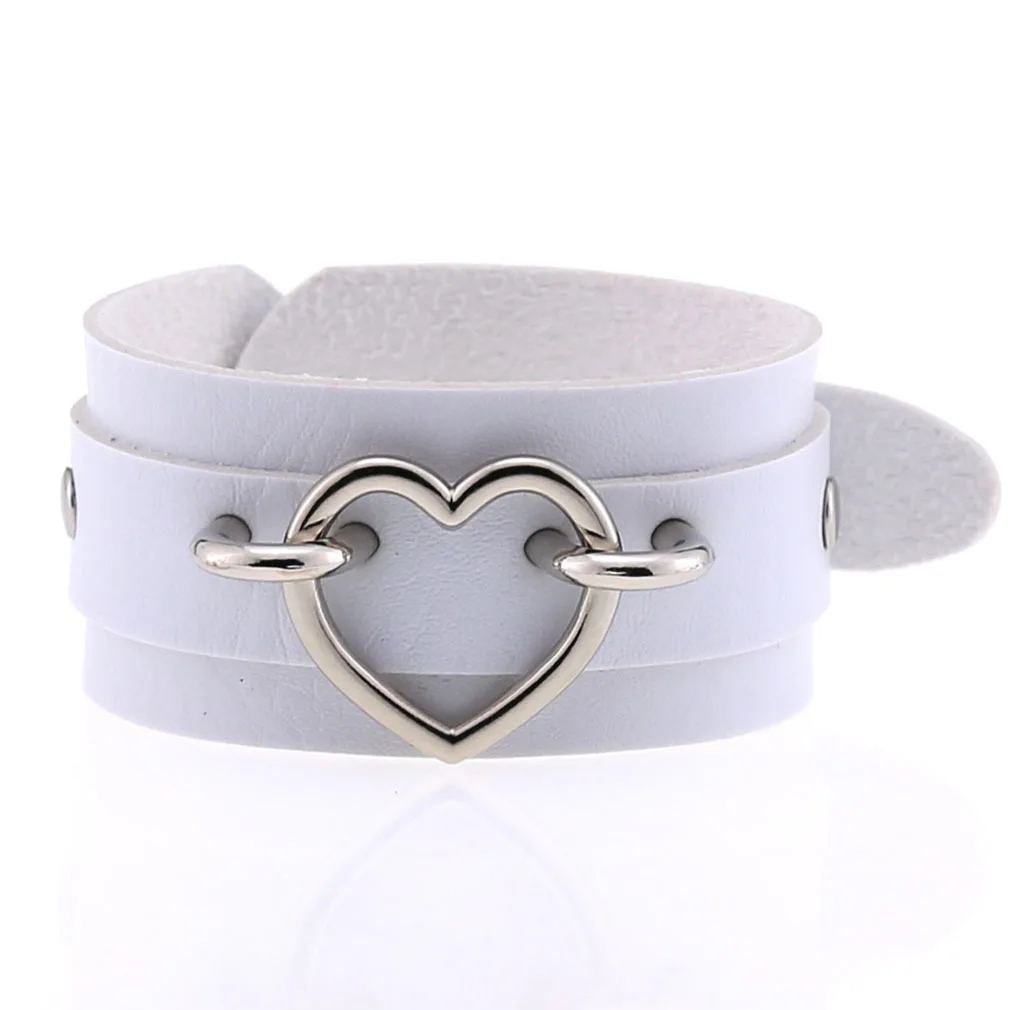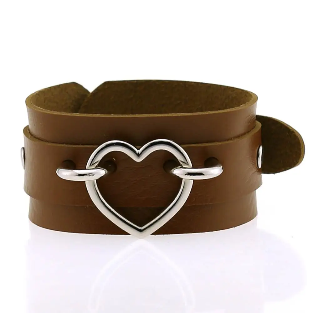 Браслет с сердцем, черный кожаный браслет, готический панк, модные браслеты, женские, мужские, эмо, металлические украшения для косплея