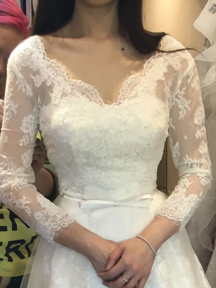 Свадебный Болеро 34, кружевные свадебные обертки с длинным рукавом и V-образным вырезом для свадебной вечеринки, дешевый белый кружевной пиджак, болеро, болеро