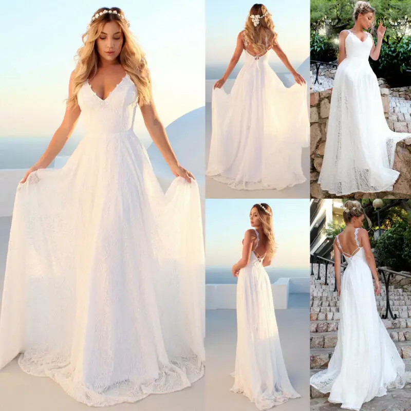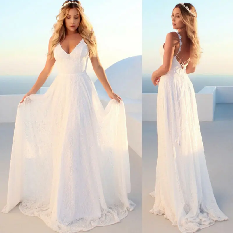 Женское длинное платье на бретелях-спагетти, Белое Кружевное Платье...