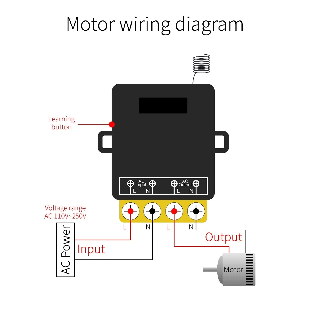 Нажмите клавишу обучения (на приемнике) 2 раза, светодиодный (на приемнике) начнет мигать 2 раза. Когда светодиодный индикатор включен, нажмите кнопку дистанционного управления (вы хотите, чтобы он учился), светодиодный (на приемнике) мигнет 3 раза, а затем выключится, учитесь преуспевать.