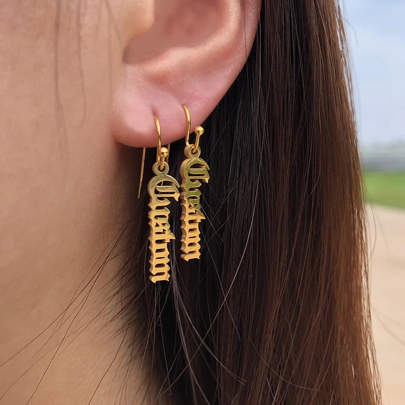 Женские Висячие серьги из нержавеющей стали, индивидуальные вертикальные висячие серьги с именем под заказ, Ювелирное Украшение в богемном стиле