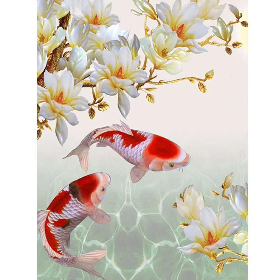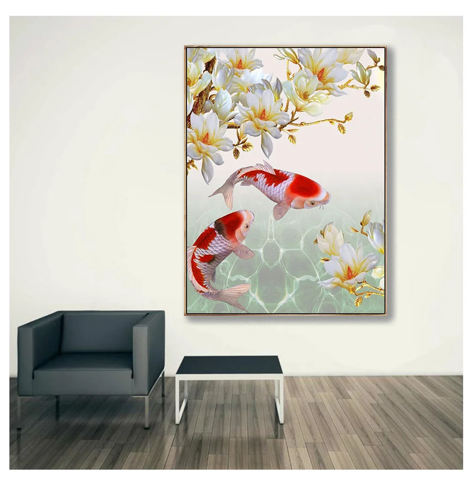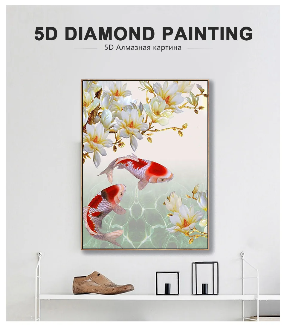 Алмазная 5D картина сделай сам, Набор для вышивки крестиком, с карпом и цветами, мозаика, с рисунком рыбы, цветов, домашнее украшение