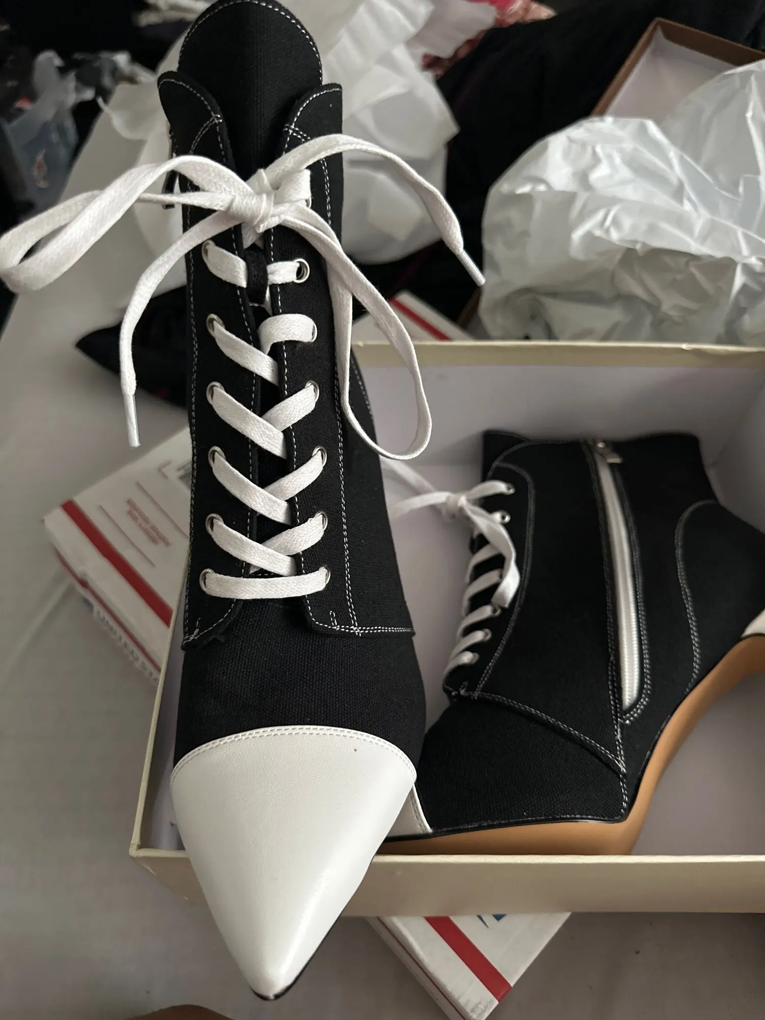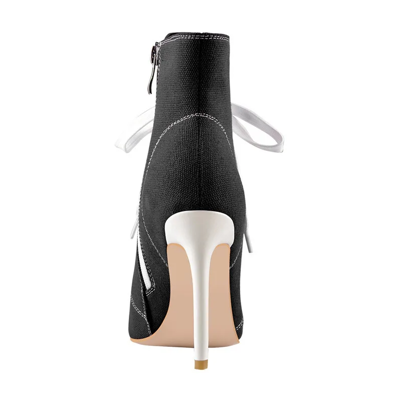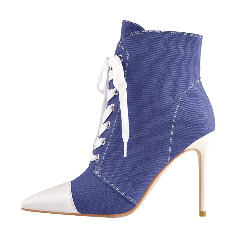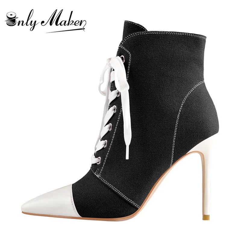 Женские парусиновые ботильоны onlyчайник, на шнуровке 10 см, с острым носком, на шпильках, с боковой молнией, лоскутные туфли, большой размер US5-US15