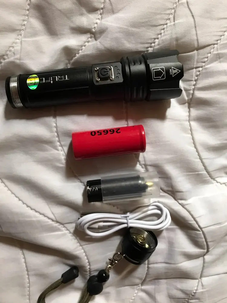 Дней доставки. Наш опыт использования дома во всех фотографиях. Первое изображение-режим с номером $, второй год двойной режим и третья фотография-это аккумулятор 18650, подгоняемый лист 26650 размер, подходящий к доставке крышки в хорошем крючке, доставка Бонни была повреждена во время транспортировки, но, как мне кажется, без начала поломка. Понимание на низком уровне головы. Быстрая доставка и такие товары, как звездочки. Купить рубашки также показывает-и 26650 батареи, включая ~ ~ купить отдельно, чтобы стоить больше или с yo ~