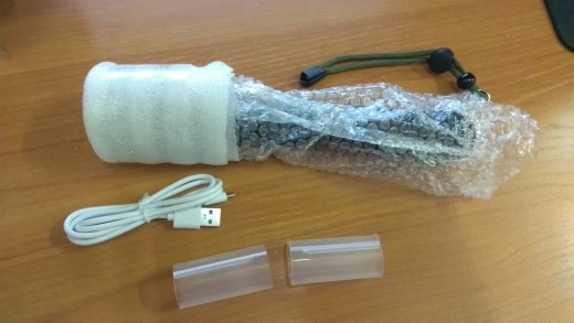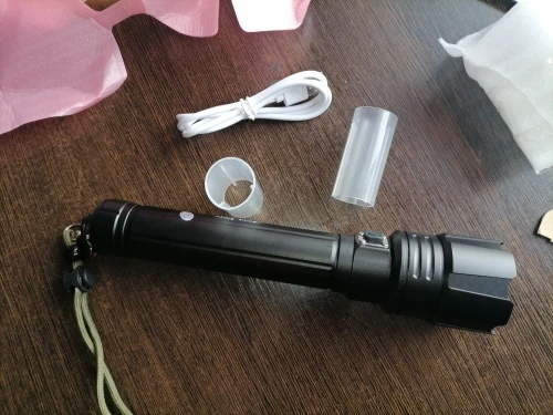 Фонарик заказал 28.12, а 06.01 уже доставили до двери. Заказывал без аккумуляторов, поэтому проверить нет возможности. Сам фонарь полностью металлический. В комплектации есть переходники с аккумулятора 12650 на 18650. Рекомендую и товар и продавца!!!