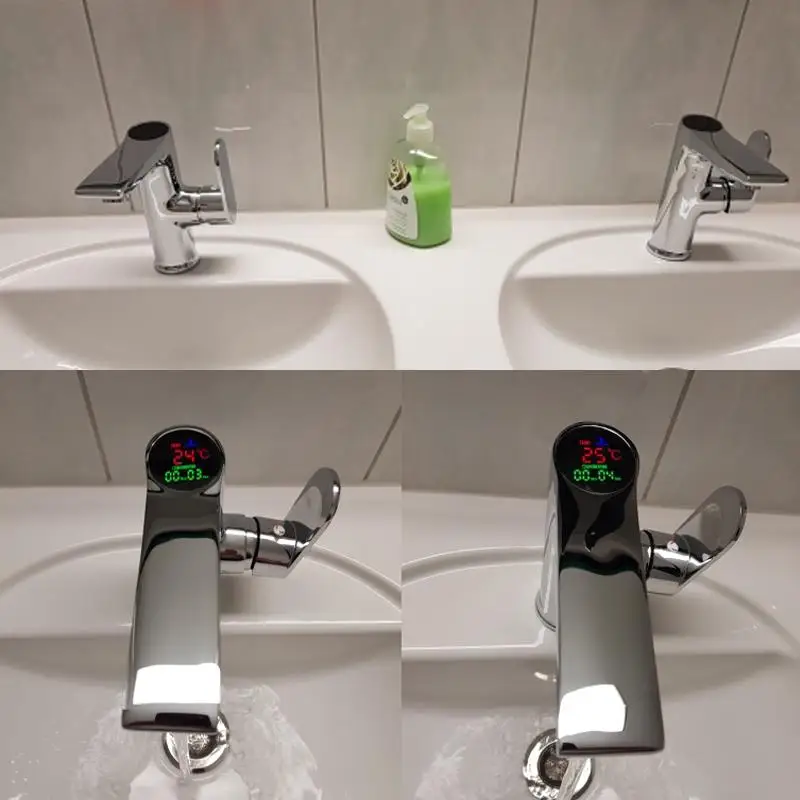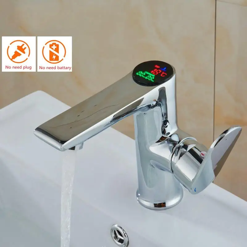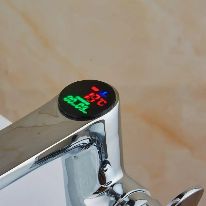 Светодиодный кран с цифровой индикацией температуры, кран для ванной комнаты из латуни, хромированный кран для раковины, смесители для холодной и горячей воды