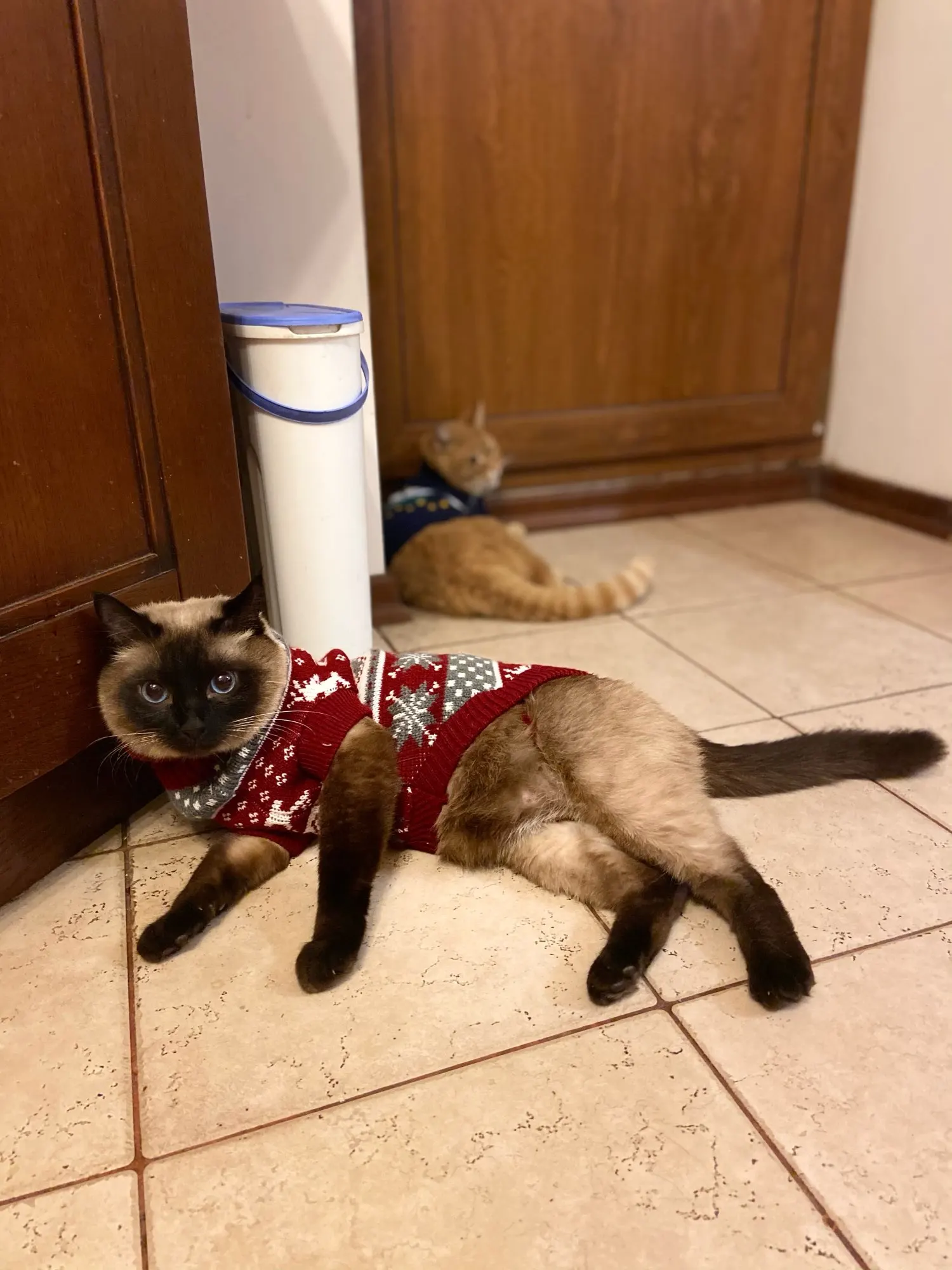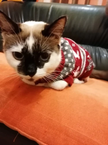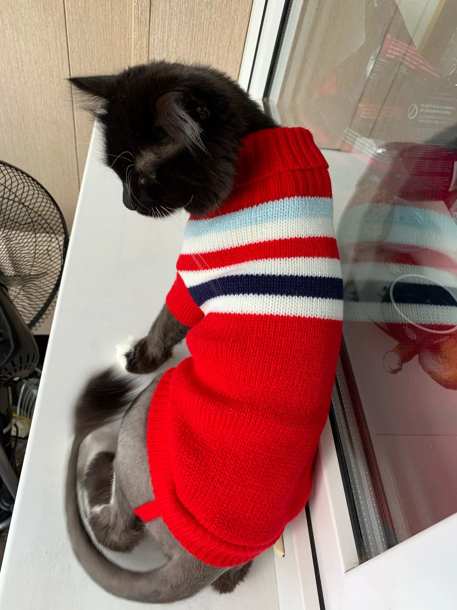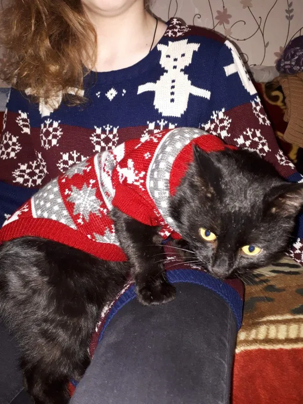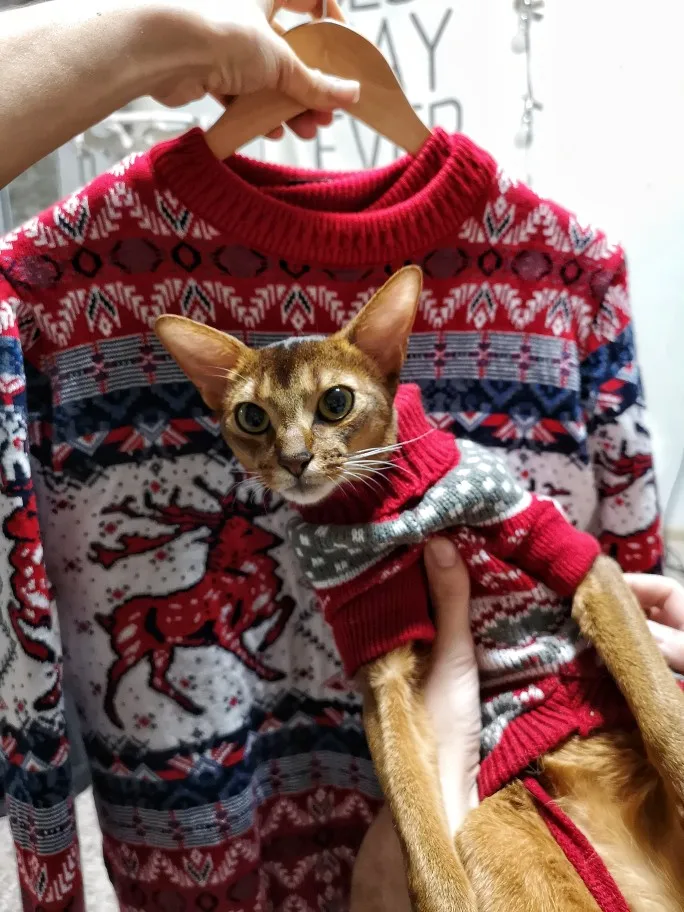 Прикольный свитер, но кошка не довольна из-за ущемления её свободы/выбора ходить голышом