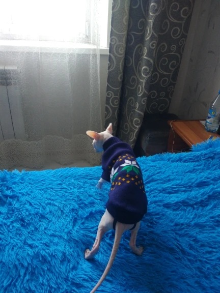Супер свитер !!! Очень красивый и тёплый на моего котёнка 2 месяца сфинкса велик но подрастёт ,,, Мега быстра доставка спасибо!!!!
