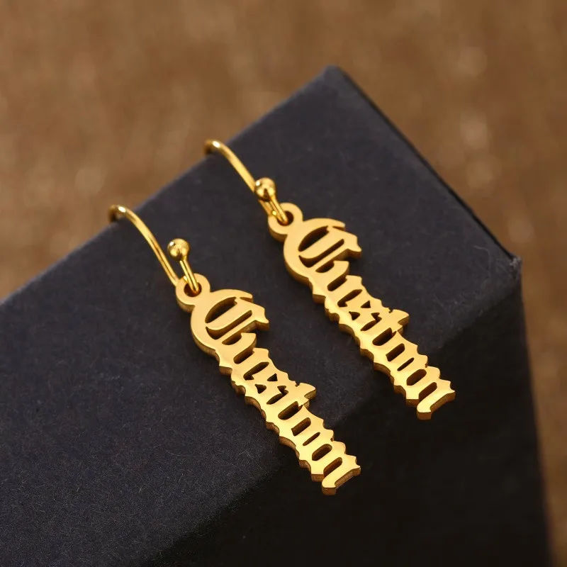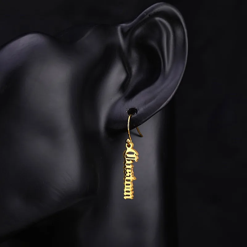 2019 модные серьги с именем на заказ, женские серьги с вертикальным именем, висячие серьги с именем, ювелирные изделия из нержавеющей стали