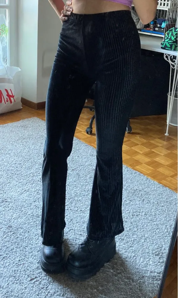 Действительно классные штаны по низкой цене, единственный низ для них заключается в том, что они достаточно много собирают пыль, и ребристый материал просвечивается, когда смотривается вверх близко (вы не можете видеть его при ношении штанов, так что это не огромная проблема). Нравится их крой, без резинок и ничего другого! Они также очень удобные, и доставка была быстрой, я рекомендую :))