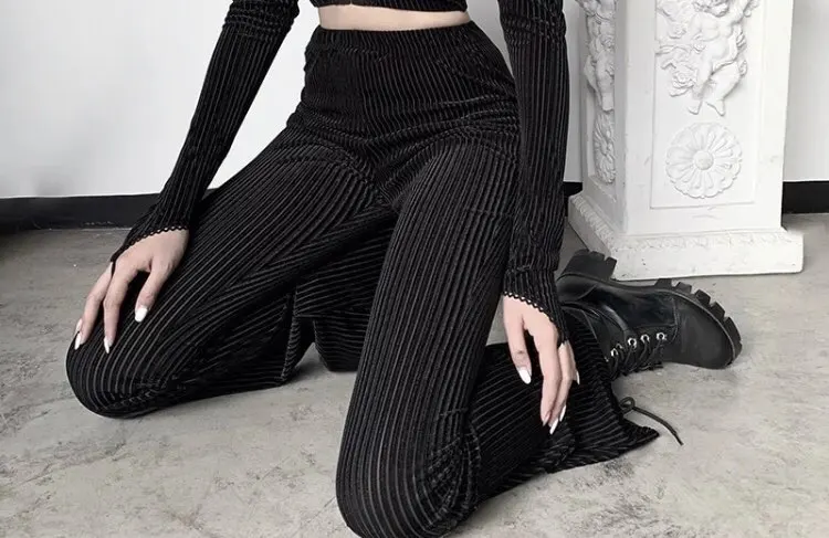 Женские брюки-клеш Goth Dark, в стиле Харадзюку, винтажные брюки в стиле эмо, гранж, на весну, в готическом стиле, Y2k