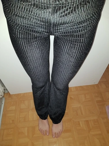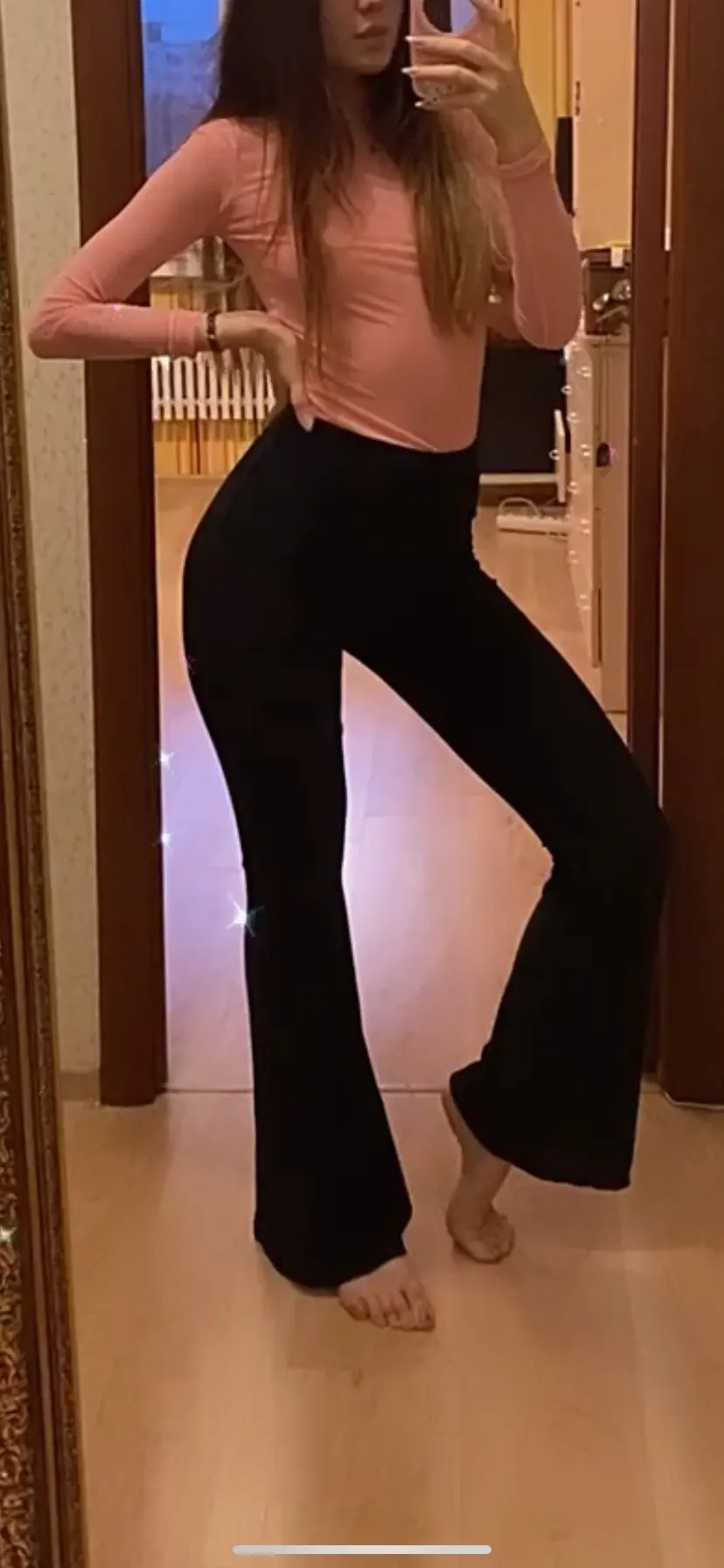 По ощущениям идеальные штанишки, на теле приятно ощущаются. Тянутся хорошо. На параметры 90-67-90, рост 165, вес 50, подошли отлично и ещё тянутся. Длина чуть ниже пяток. Для дома идеальные, если на выход, то с тёмными колготками, иначе просвечивают на месте полосок. Понравилось что сидят по фигуре, а к низу расширяются. Заказом довольна, спасибо!