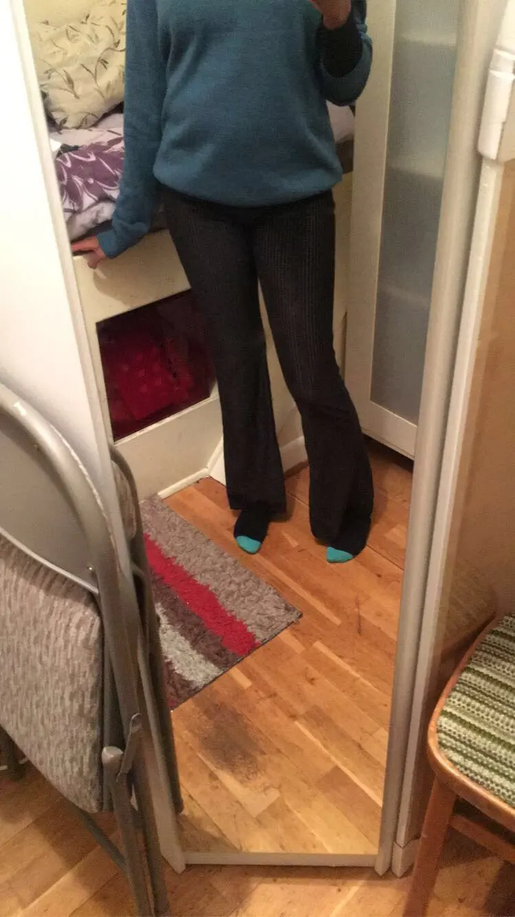 Мне нравятся эти штаны! Фотографии, которые я ставил, на самом деле не делают это торжественно, к сожалению, но они действительно красивые и дают хороший изгиб вокруг отходов :) я короткий (я думаю, что я, возможно, около 5 футов?) таким образом, они были немного длиннее, но не слишком много! Если я надену эти сапоги на платформе, они будут идеальными! Я рекомендую это!