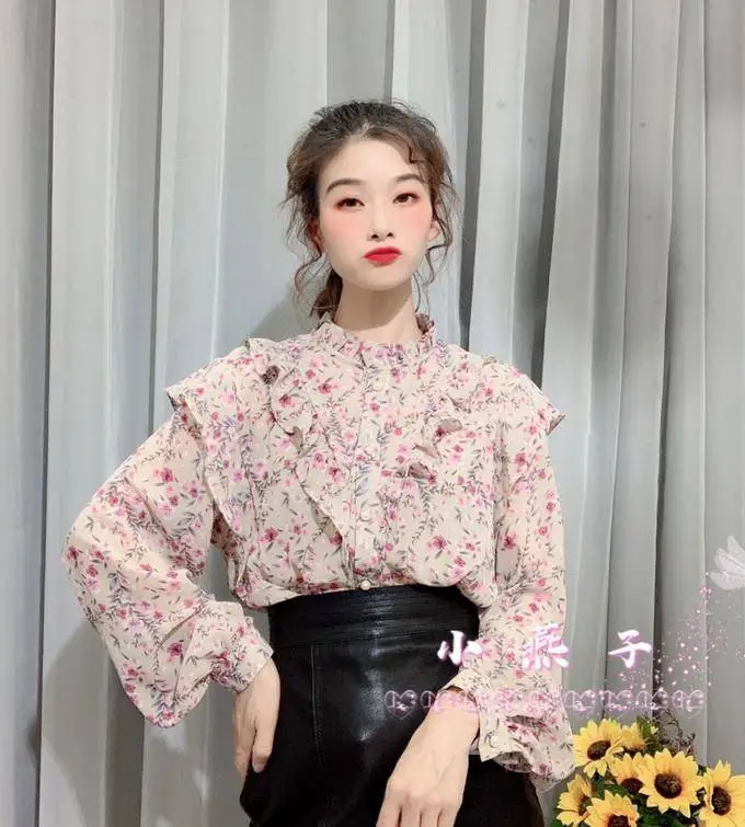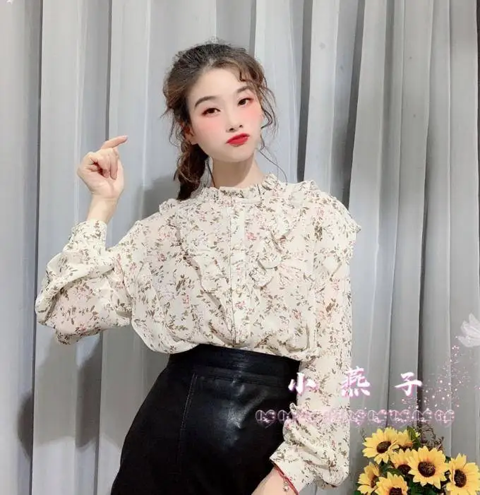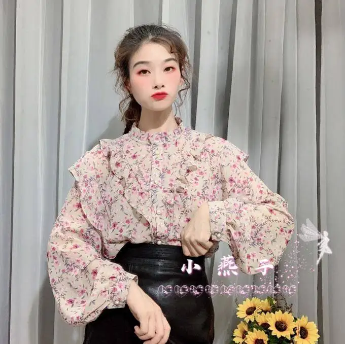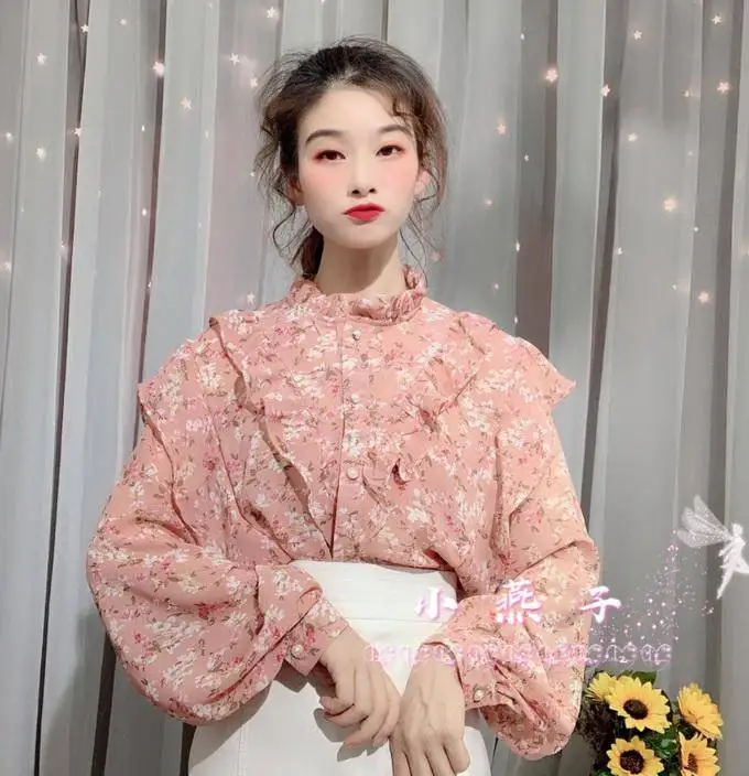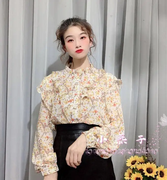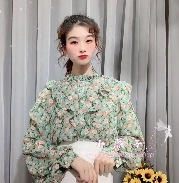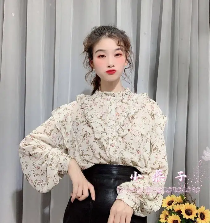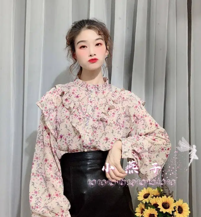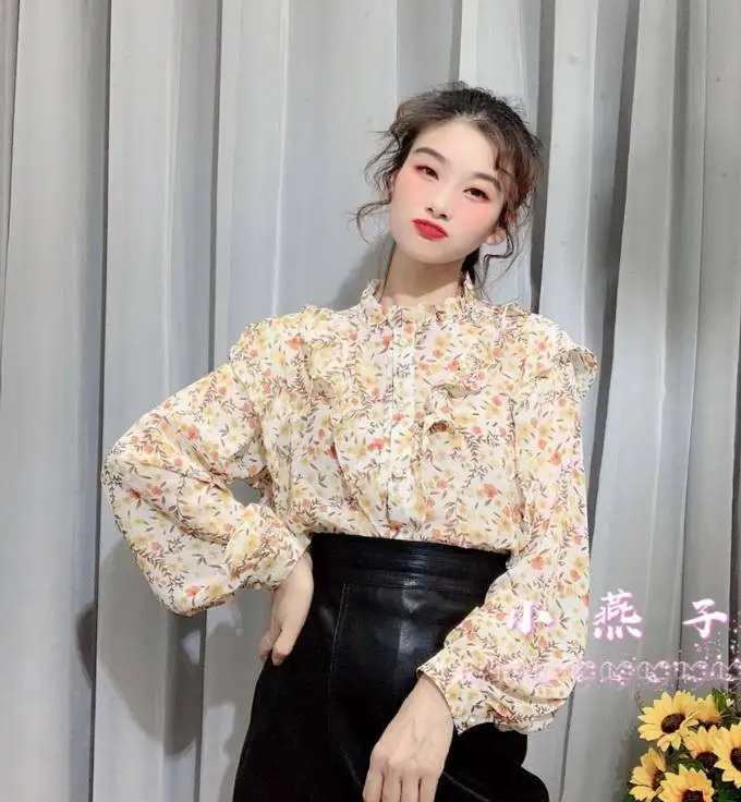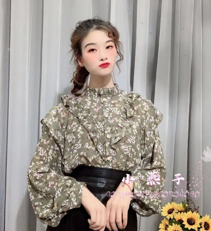 Женские шифоновые блузки Bella philosophy, весенние блузки с оборками и рукавами-фонариками, блузка с воротником-черепашкой и цветочным принтом, 2020