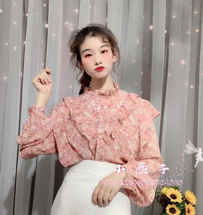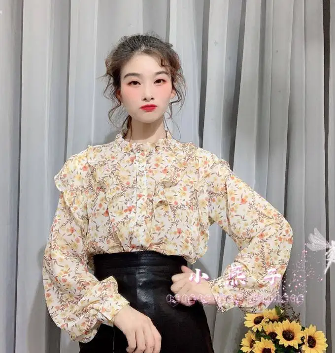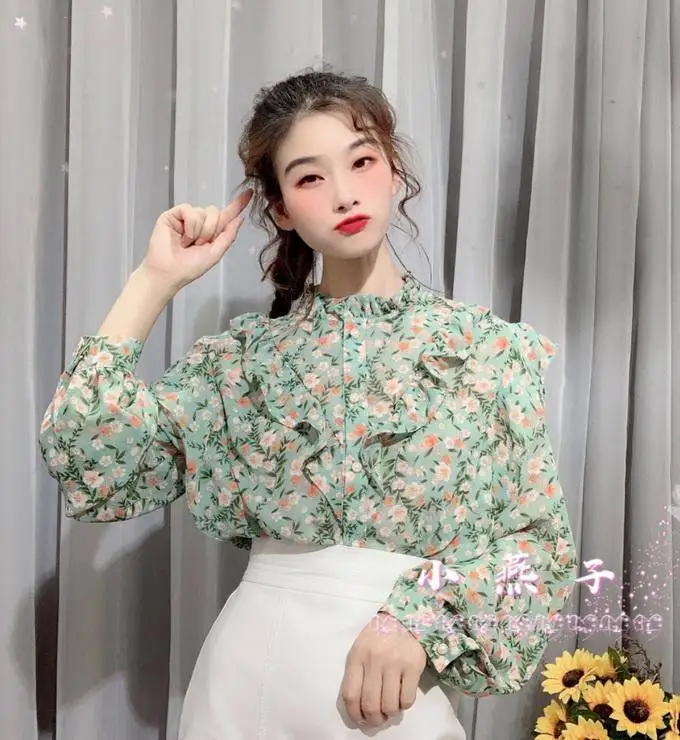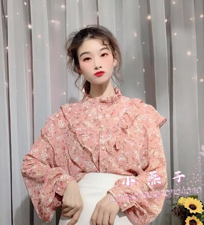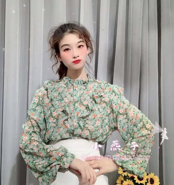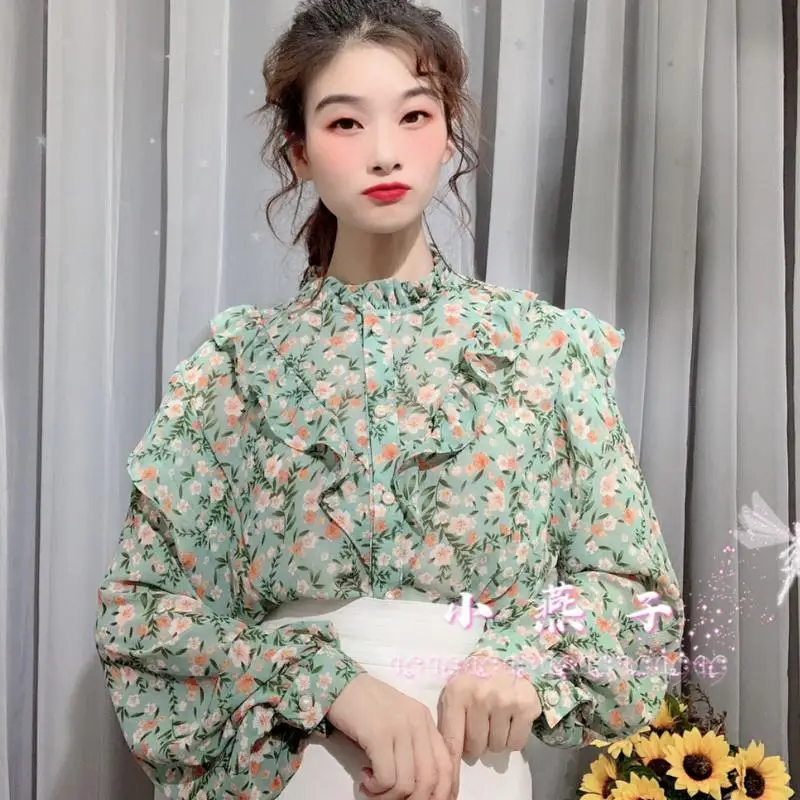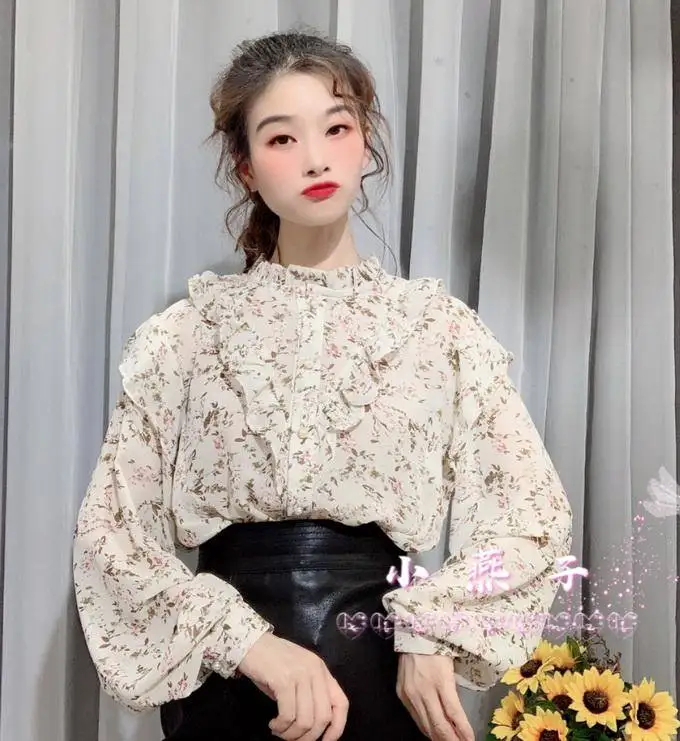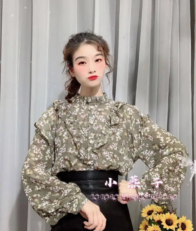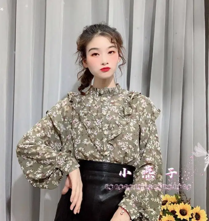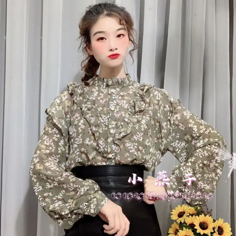Женские шифоновые блузки Bella philosophy, весенние блузки с оборками и рукавами-фонариками, блузка с воротником-черепашкой и цветочным принтом, 2020