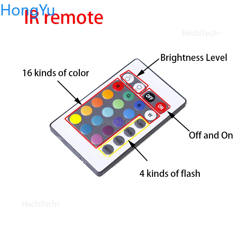 1. Поставляется с радиочастотным пультом дистанционного управления для изменения цвета, изменения вспышки и ярких/тусклых изменений.