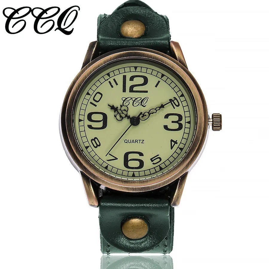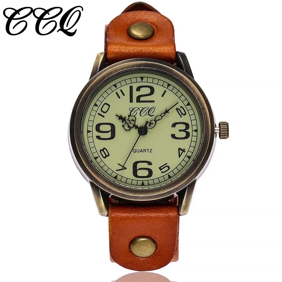 Часы наручные CCQ унисекс, брендовые винтажные Кварцевые водонепроницаемые с ремешком из натуральной кожи, подарок для мужчин и женщин