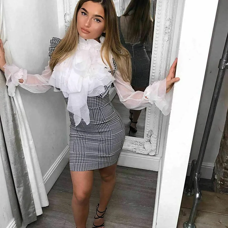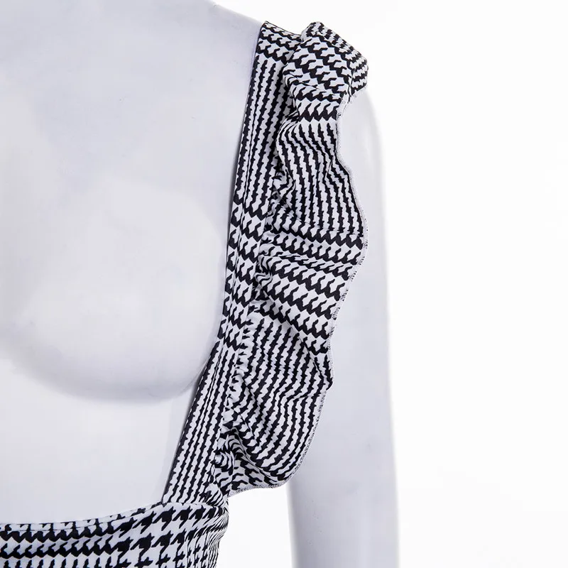 Модное женское платье в клетку собачий зуб оборкой плиссированное платье-сарафан с высокой талией Bodycon Вечерние мини платье для праздников и на каждый день, обтягивающее платье vestidos