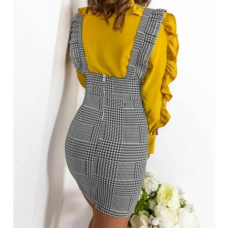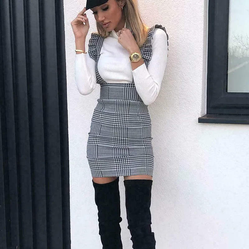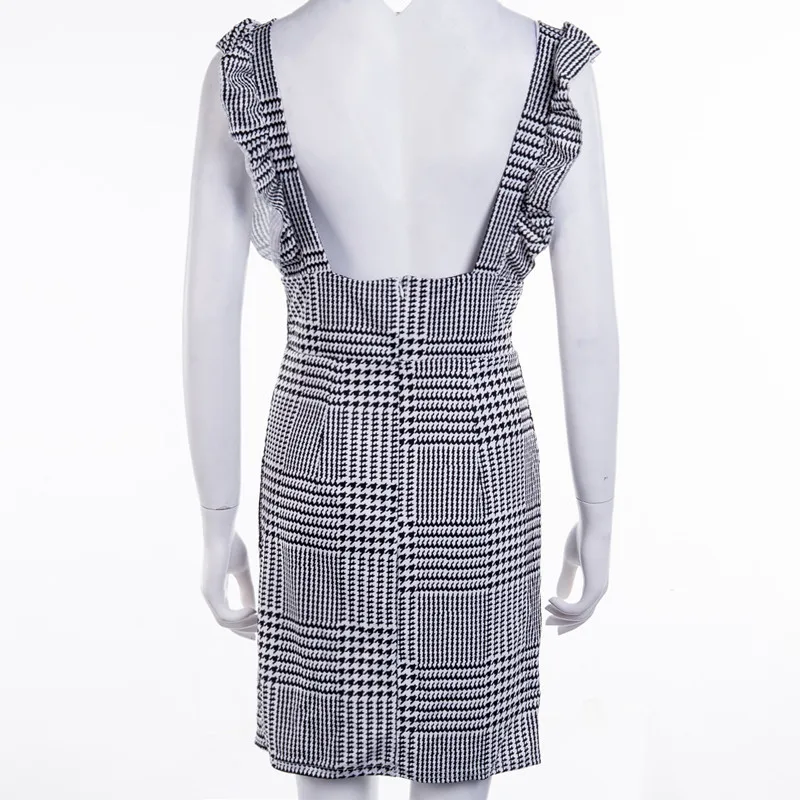 Номер моделиFashion Women Dress Check Dog Tooth Frill Ruffle Pinafore