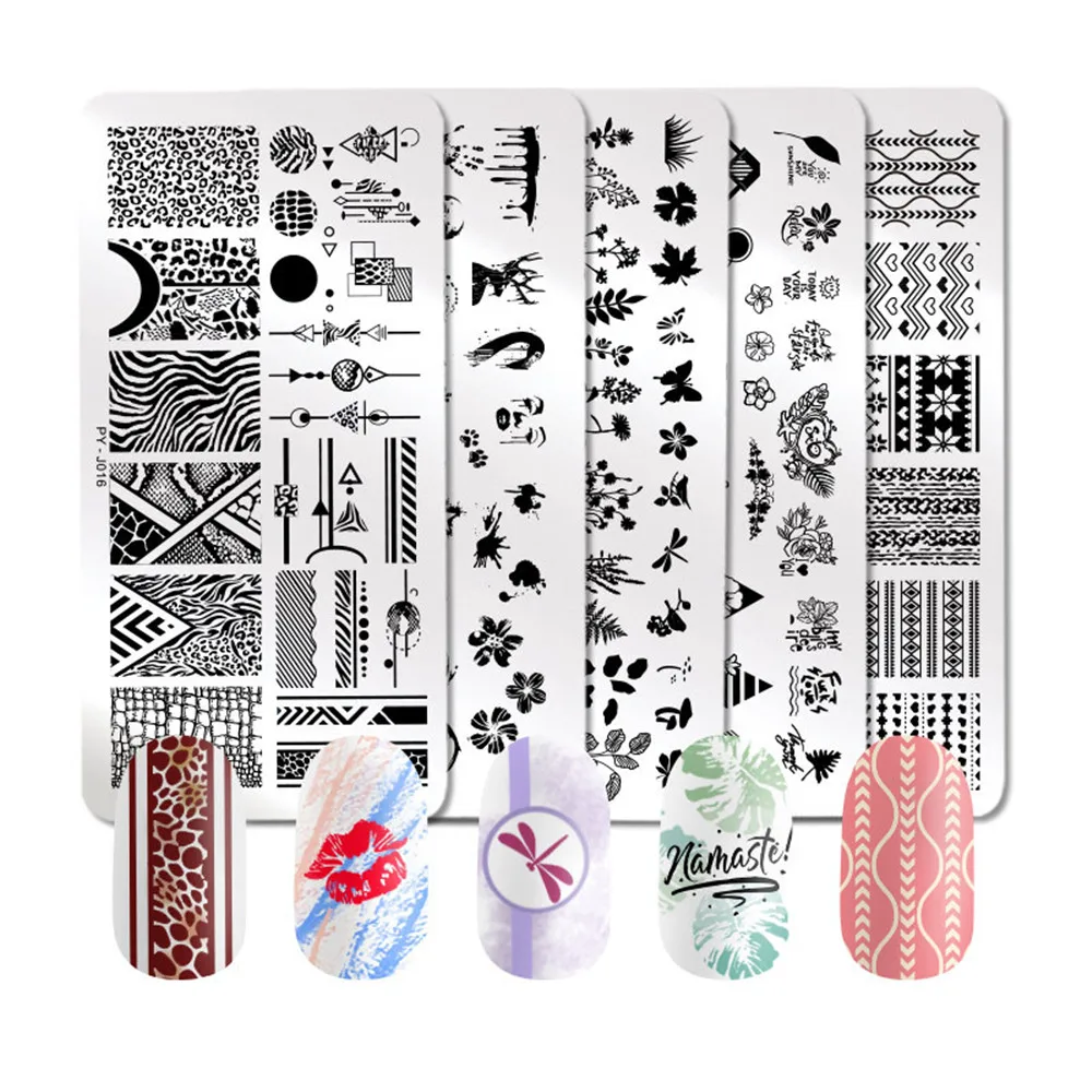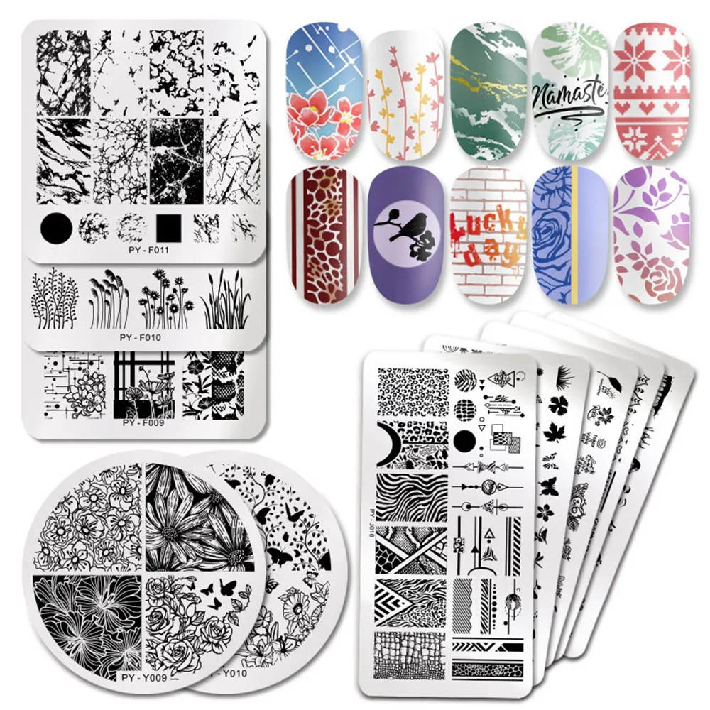 Пластины для стемпинга ногтей, скребок для стемпинга, шаблон для ногтей, цветы, геометрические узоры, сделай сам, дизайн ногтей, маникюрная пластина для стемпинга, аксессуары