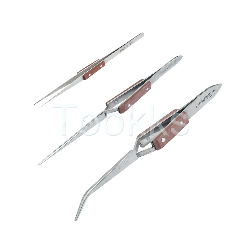 Pro'sKit 1 PK-119 T пинцет с деревянной ручкой из нержавеющей стали...