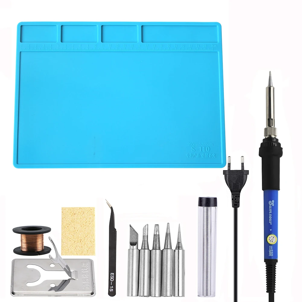 1 шт. 80 Вт LCD паяльник 1 шт. паяльная проволока 1 шт. подставка 5 железных наконечников 1 шт. теплоизоляционная прокладка Пинцет 1 шт. 1 шт. губка 1 шт. медный провод