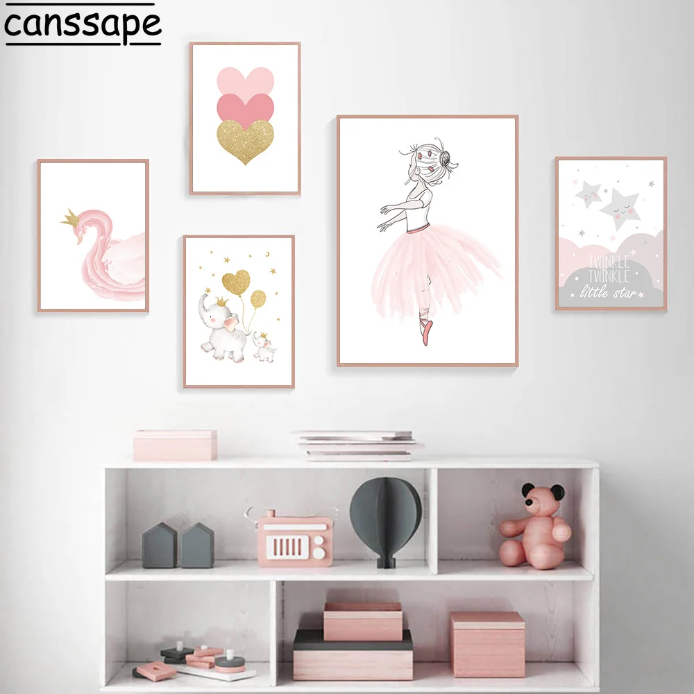 Лебедь холст живопись балет стена искусство фотообои розовая Звезда скандинавские настенные картины декор для комнаты девушки