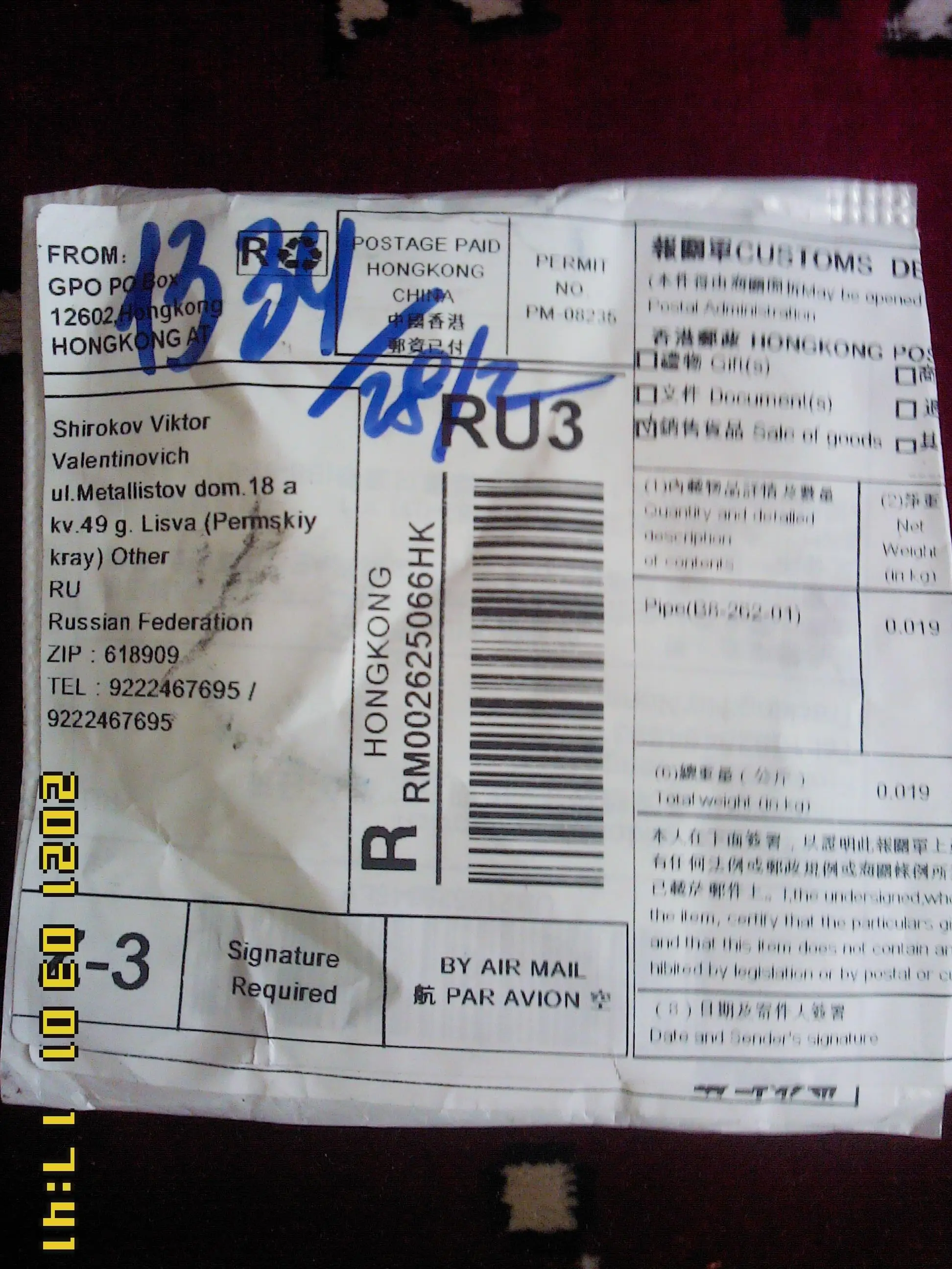 Страна: SI Color: 2PCS Доставка: Yanwen Economic Air Mail 18.01.2021