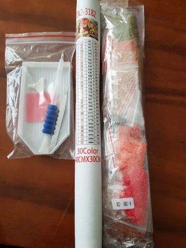 Посылку получил. Заказывал для жены. Жена просила написать, что посылка очень и очень хорошо упакована, ни чего не помято, ещё в нутри картины какой-то поролон вставлен. Плюс коробочка, палочка и пинцет. Короче жена довольна и я тоже... Александр город Коломна.