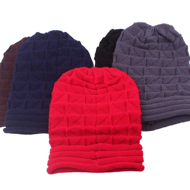 Мешковатая зимняя вязаная шапка, Шерстяная Шапка-бини, мужская, жен...