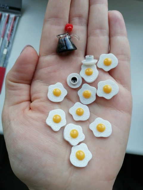 Очень милая еда для кукол! Не перестаю восхищаться этому кукольному ассортименту с Али экспресс, который вызывает столько радости у взрослых и детей))) Посылка дошла за 3 недели до Хабаровска. Трек отслеживался. Продавец все хорошо упаковал в пупырку. Еда соответствует описанию. 5 яичниц я отдала дочери её куклам, а 5 забрала в свой кукольный дом. Всё куклы довольны. Продавца рекомендую.