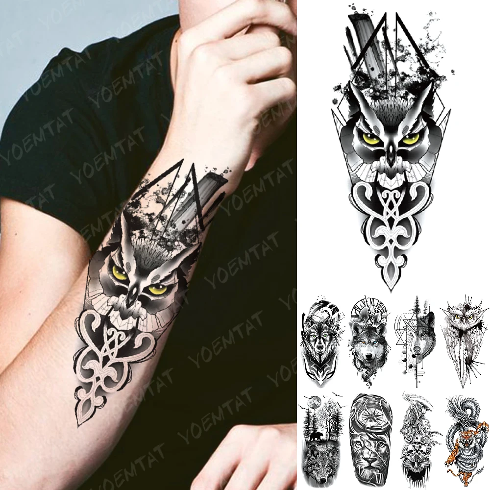 татуировки временные тату Водостойкая временная татуировка, наклейка с желтыми глазами, Сова, флеш-тату, Лесной Волк, тигр, дракон, боди-арт, рука, поддельные тату для женщин и мужчин