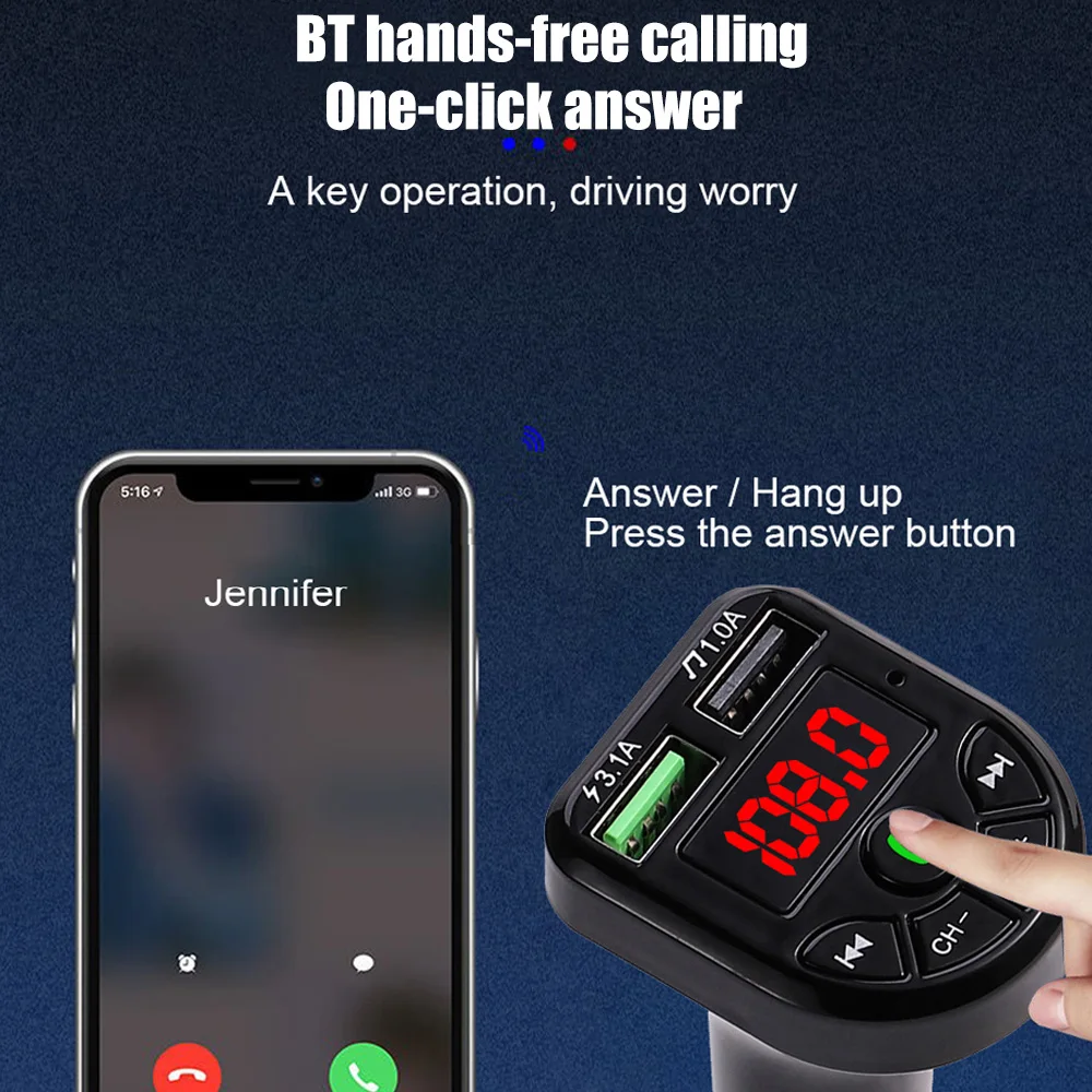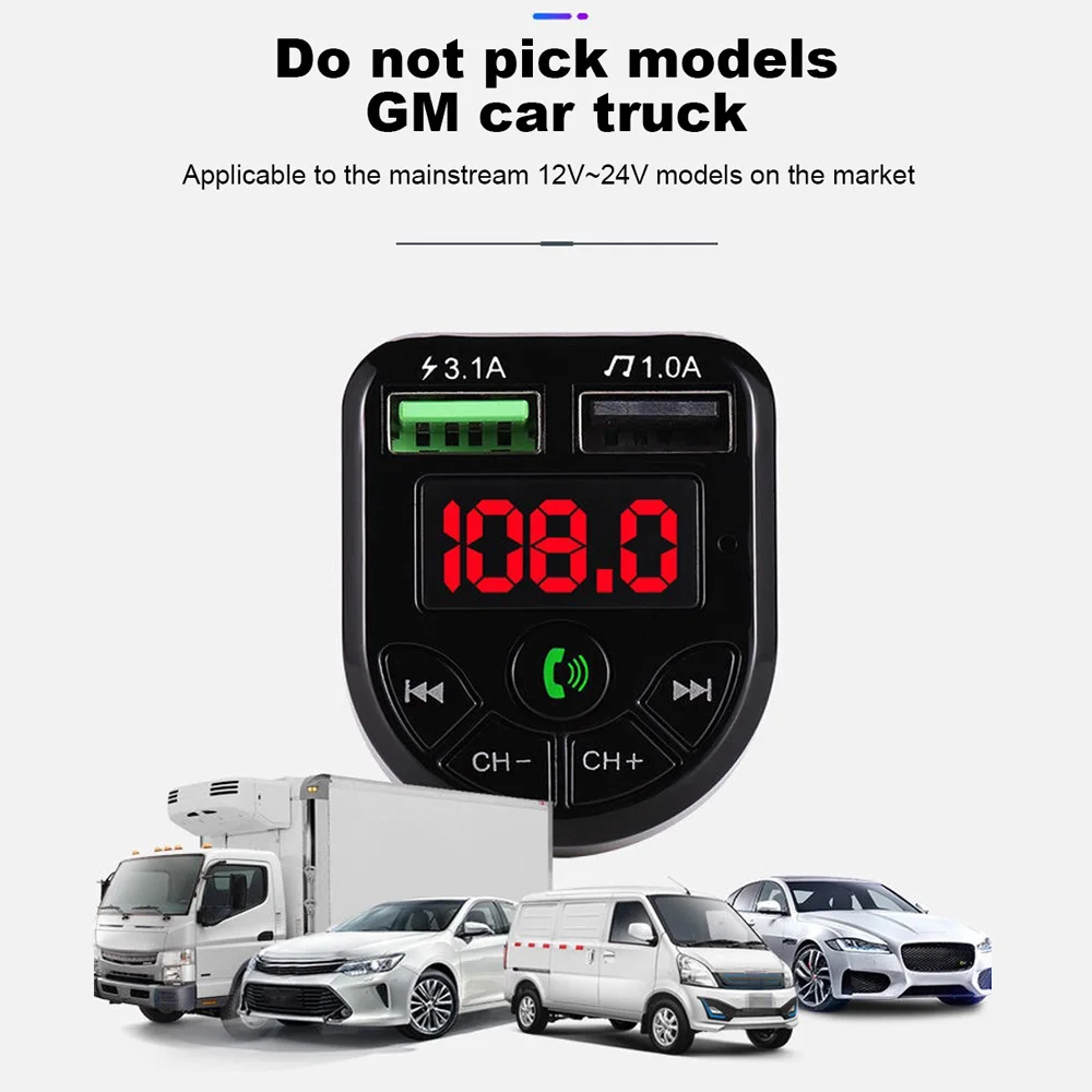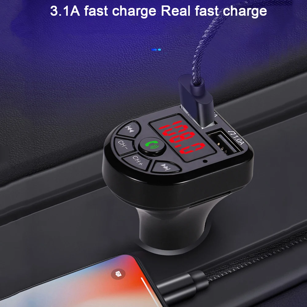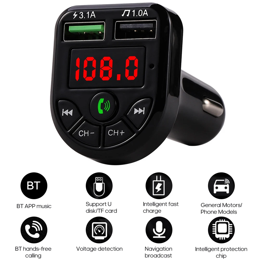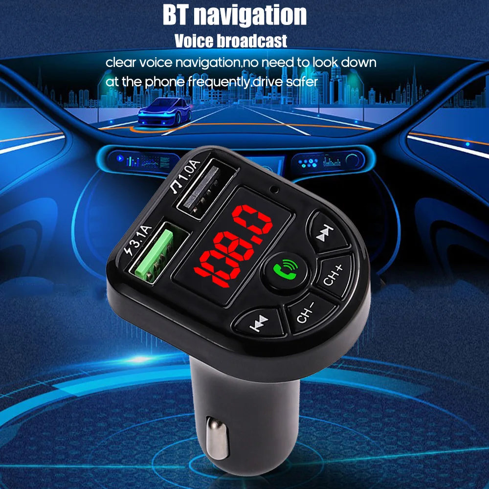 Автомобильный MP3-плеер BTE5, FM-трансмиттер с поддержкой Bluetooth, с двумя USB-портами для зарядки, 12-24 В